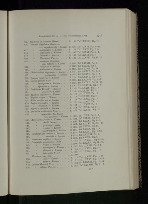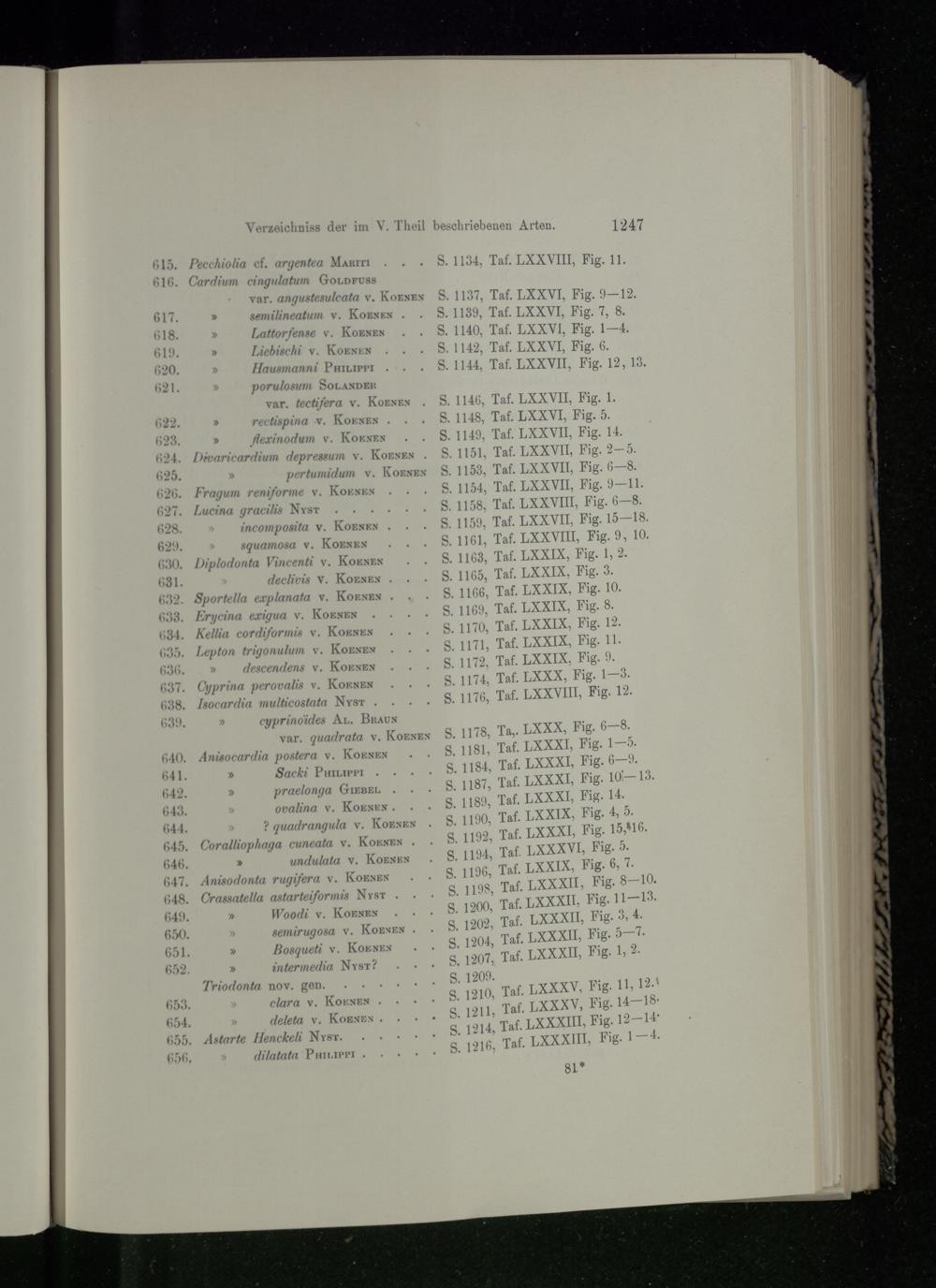 Verzeichniss der im V. Theil beschriebenen Arten.