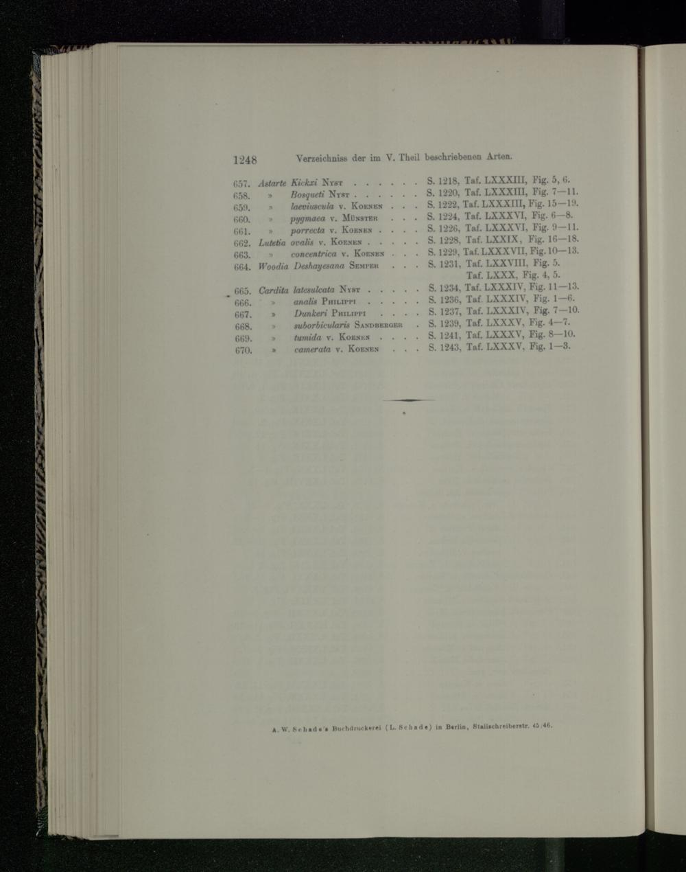Verzeichniss der im V. Theil beschriebenen Arten.