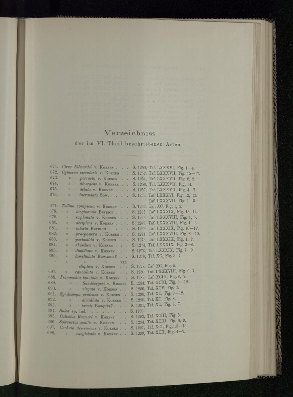 Verzeichniss der im VI. Theil beschriebenen Arten.