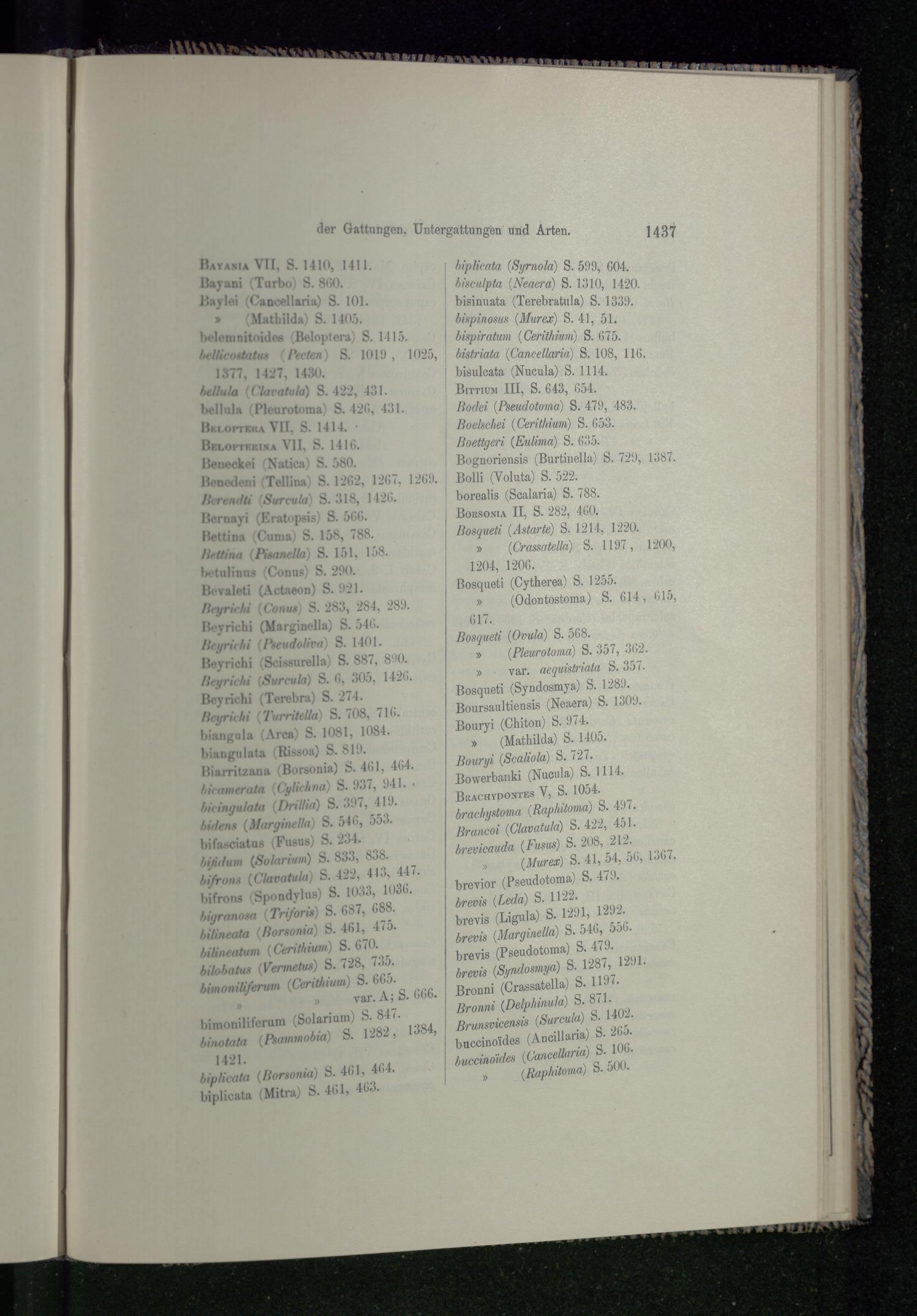 Alphabetisches Verzeichniss der Gattungen, Untergattungen und Arten.