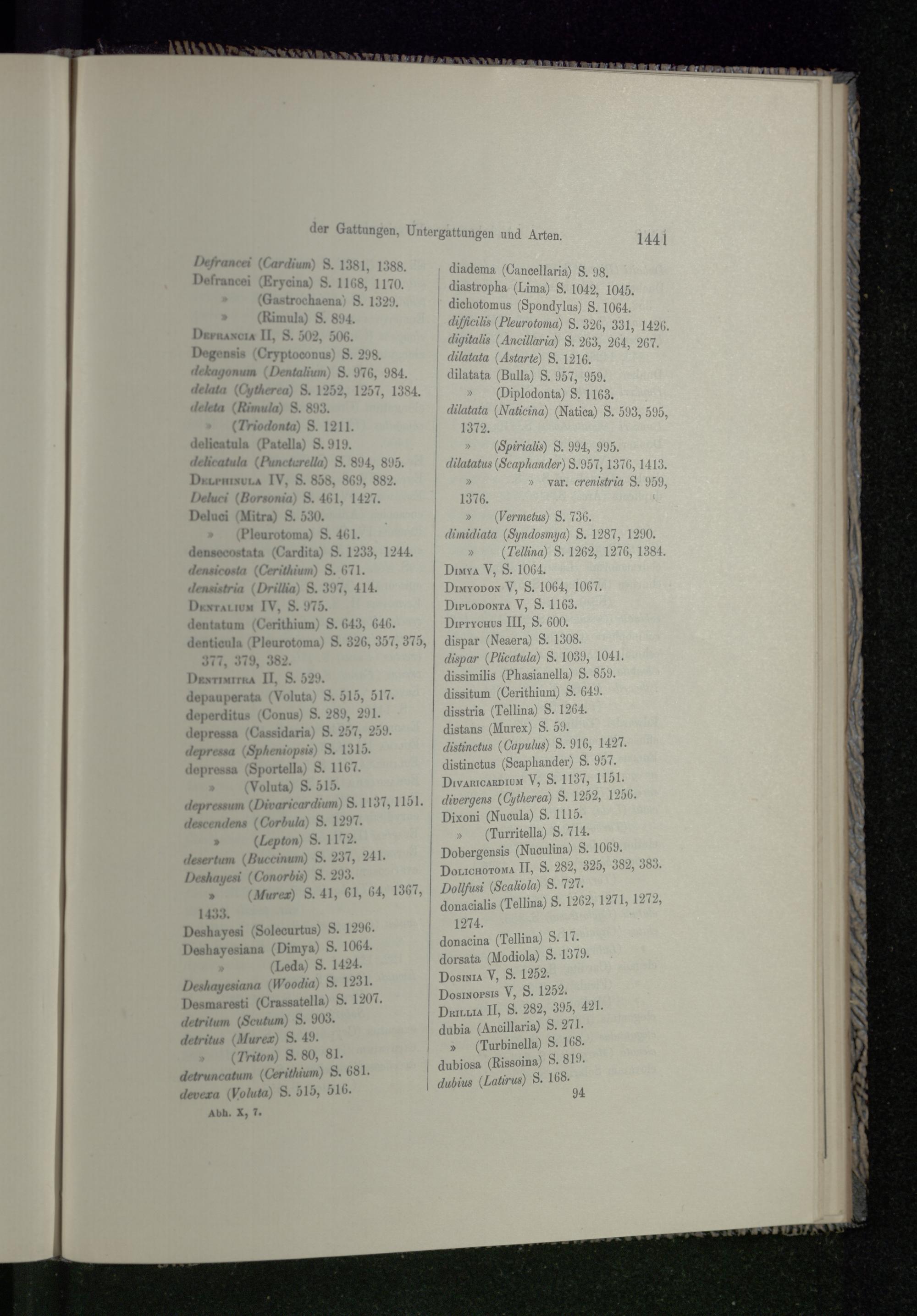 Alphabetisches Verzeichniss der Gattungen, Untergattungen und Arten.