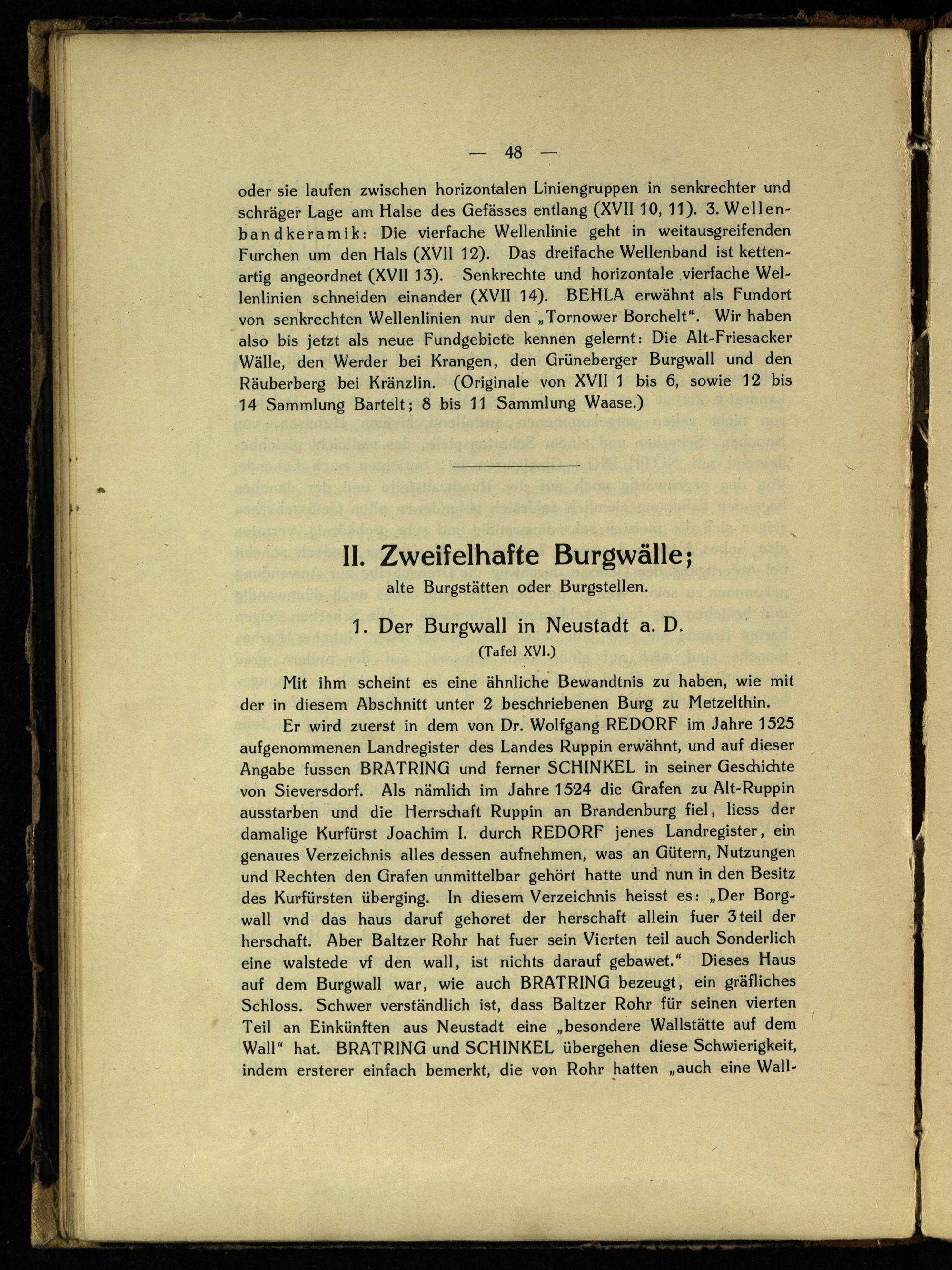 II. Zweifelhafte Burgwälle; alte Burgstätten oder Burgstellen.