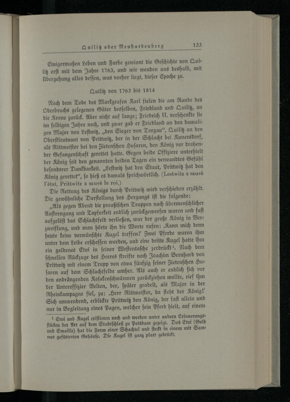 Quilitz von 1763 bis 1814.