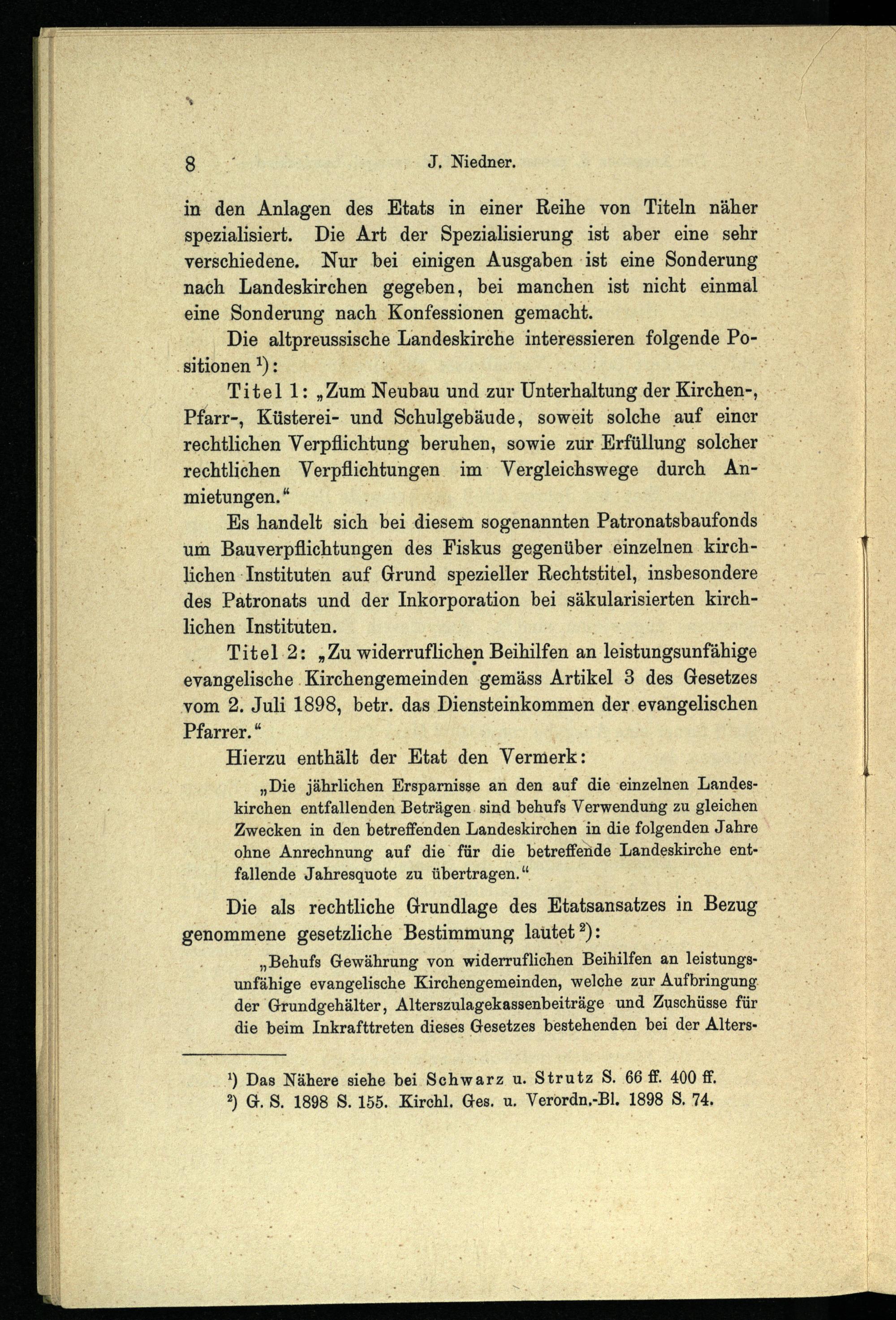 Die Ausgaben des preussischen Staats für die evangelische Landeskirche der älteren Provinzen : ein Beitrag zur Geschichte der evangelischen Kirchenverfassung in Preussen / von Johannes Niedner
