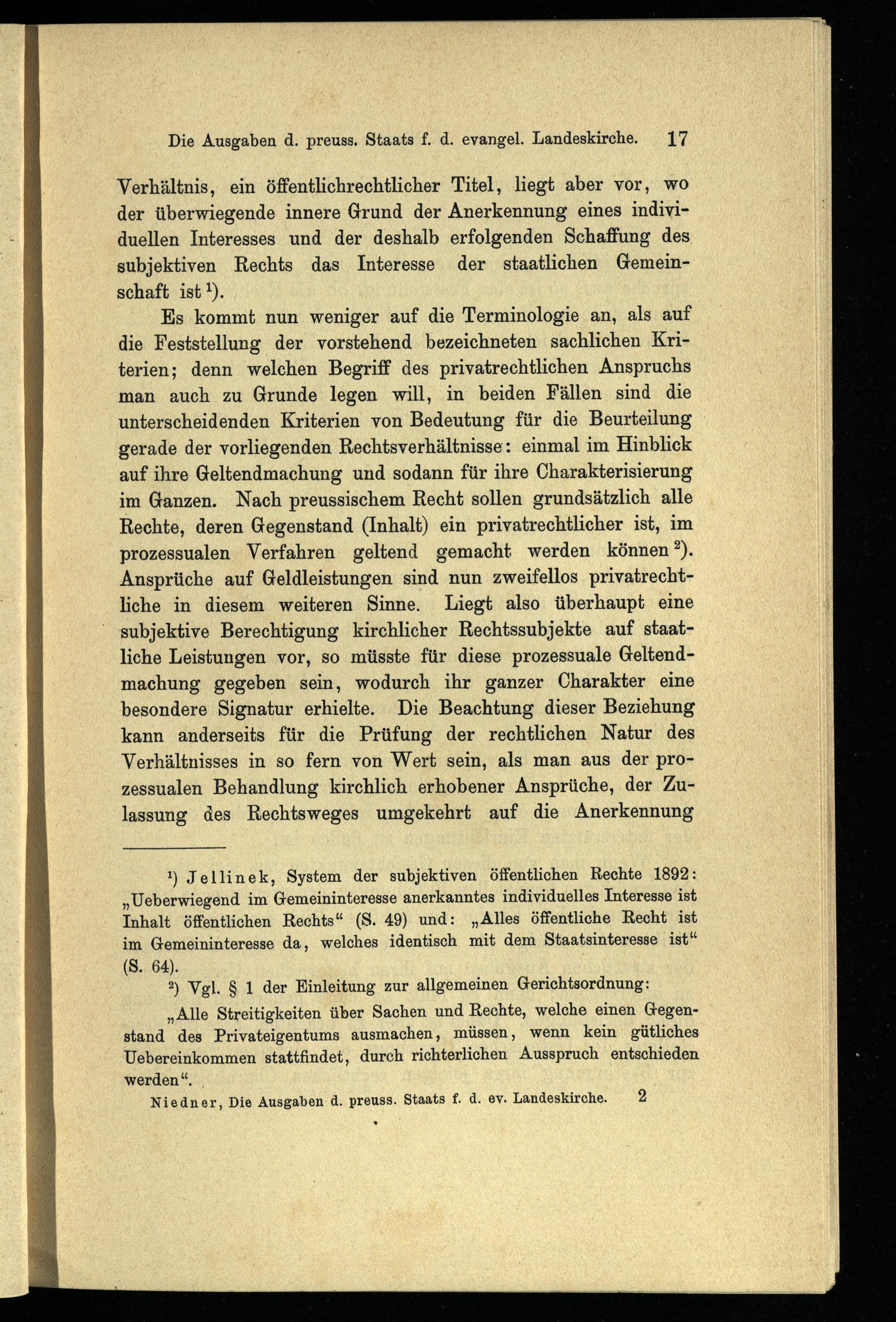 Die Ausgaben des preussischen Staats für die evangelische Landeskirche der älteren Provinzen : ein Beitrag zur Geschichte der evangelischen Kirchenverfassung in Preussen / von Johannes Niedner
