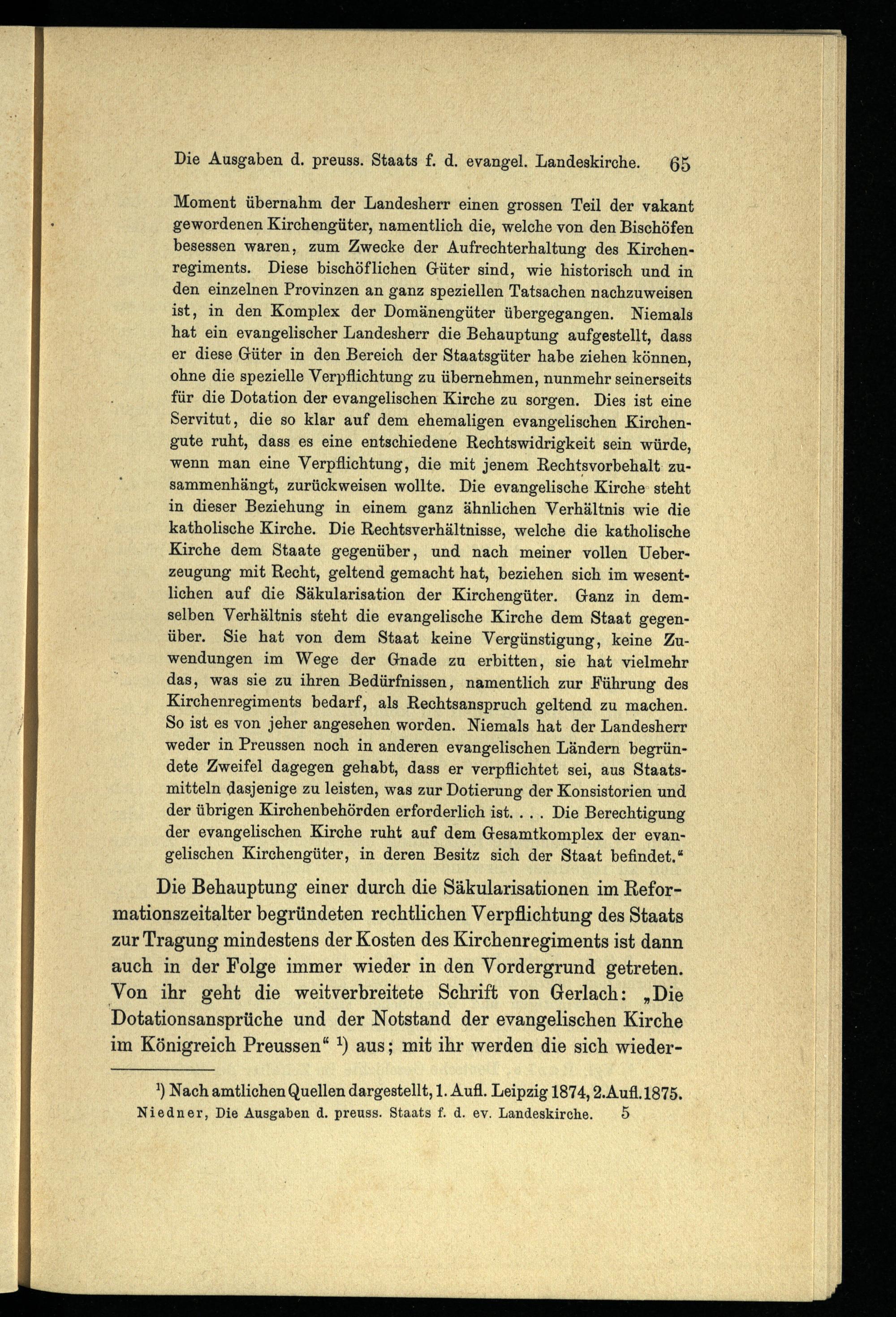 Die Ausgaben des preussischen Staats für die evangelische Landeskirche der älteren Provinzen : ein Beitrag zur Geschichte der evangelischen Kirchenverfassung in Preussen / von Johannes Niedner