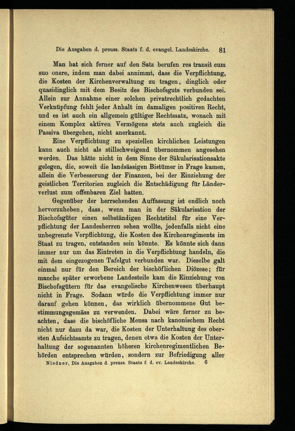 Die Ausgaben des preussischen Staats für die evangelische Landeskirche der älteren Provinzen : ein Beitrag zur Geschichte der evangelischen Kirchenverfassung in Preussen / von Johannes Niedner