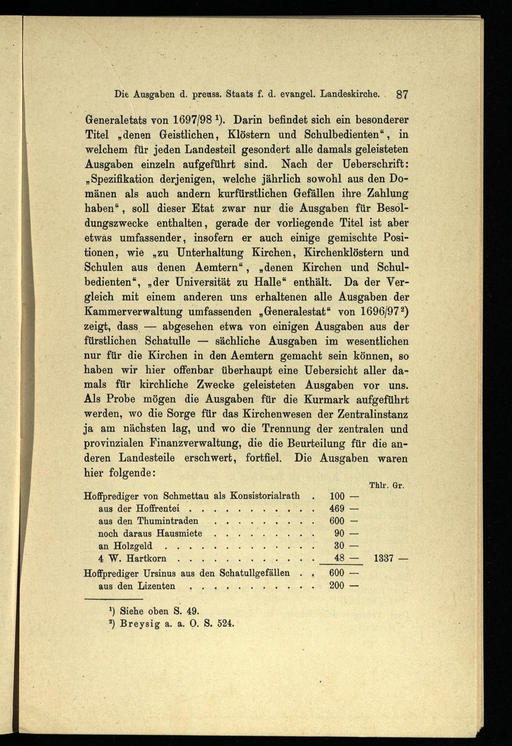 Die Ausgaben des preussischen Staats für die evangelische Landeskirche der älteren Provinzen : ein Beitrag zur Geschichte der evangelischen Kirchenverfassung in Preussen / von Johannes Niedner