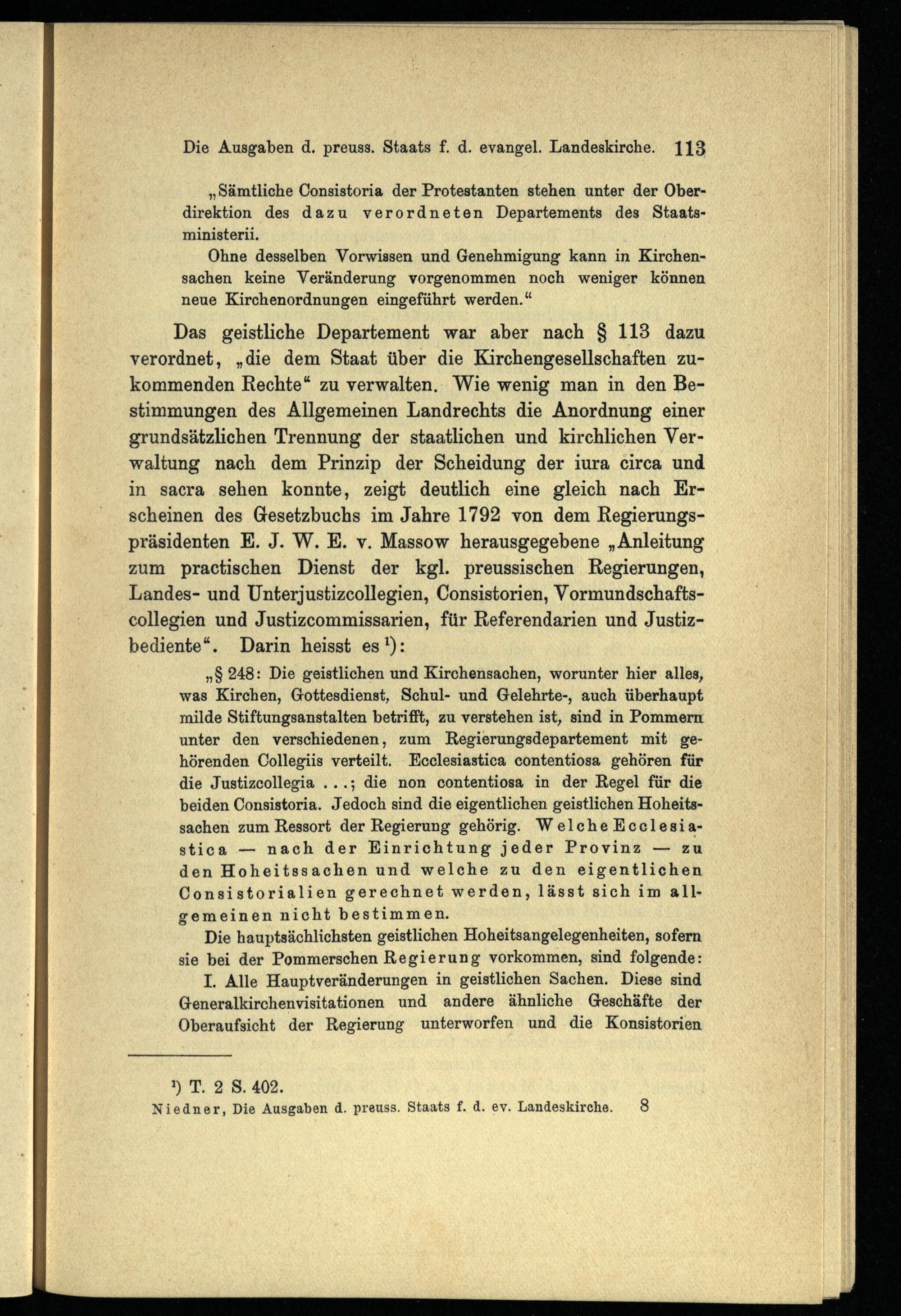 Die Ausgaben des preussischen Staats für die evangelische Landeskirche der älteren Provinzen : ein Beitrag zur Geschichte der evangelischen Kirchenverfassung in Preussen / von Johannes Niedner