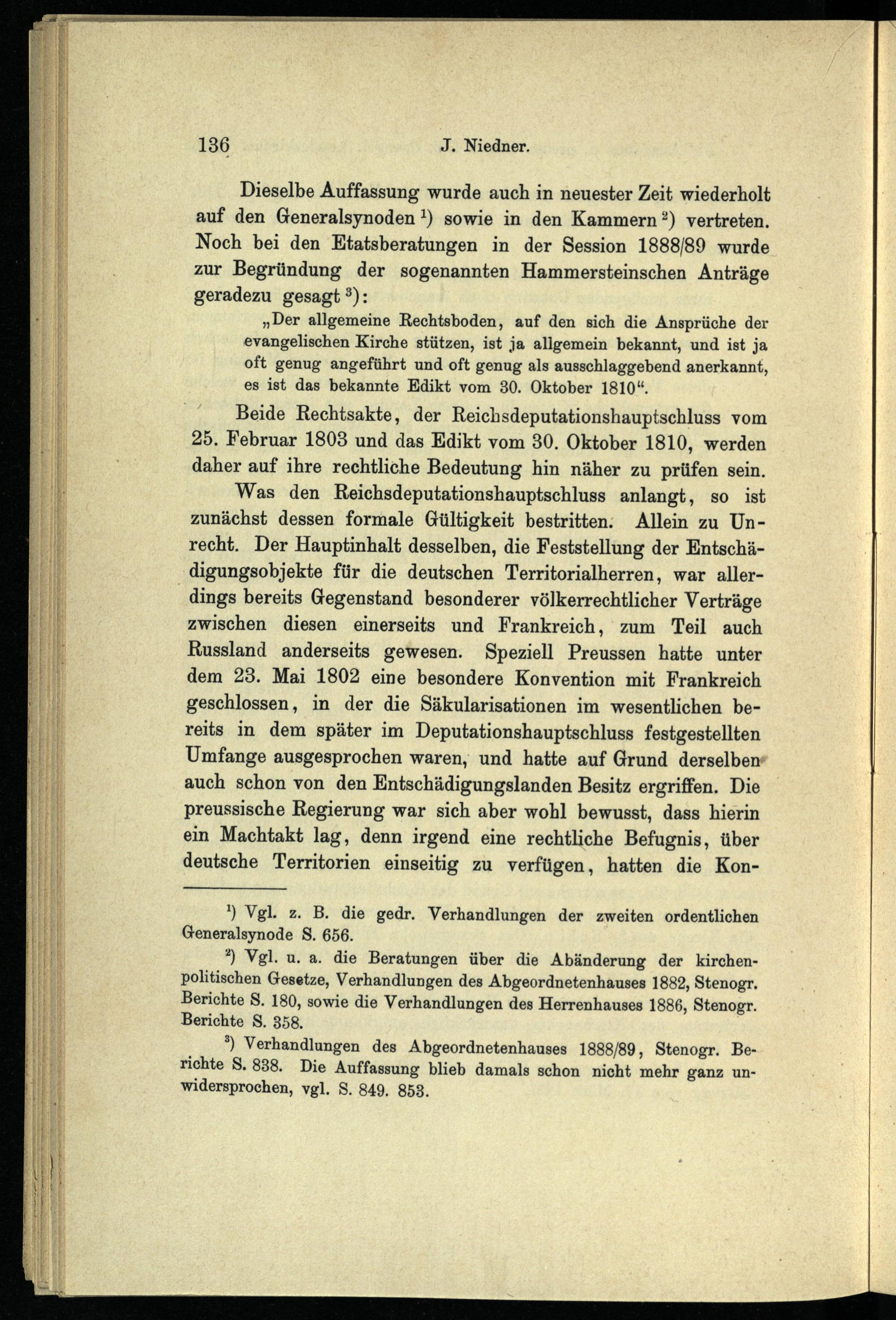 Die Ausgaben des preussischen Staats für die evangelische Landeskirche der älteren Provinzen : ein Beitrag zur Geschichte der evangelischen Kirchenverfassung in Preussen / von Johannes Niedner