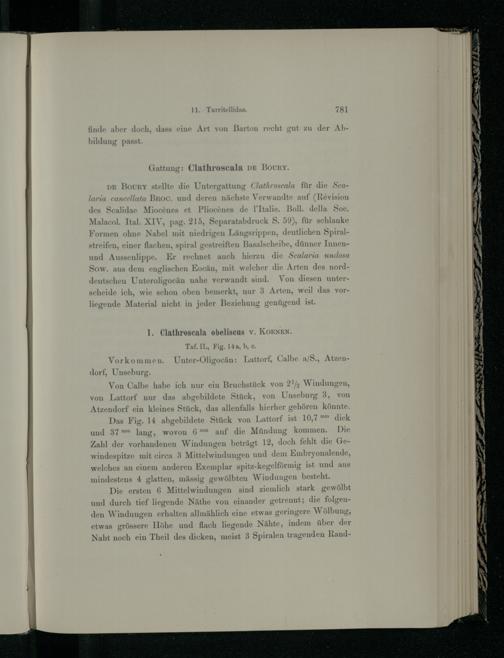 1. Clathroscala obeliscus v. Koenen.