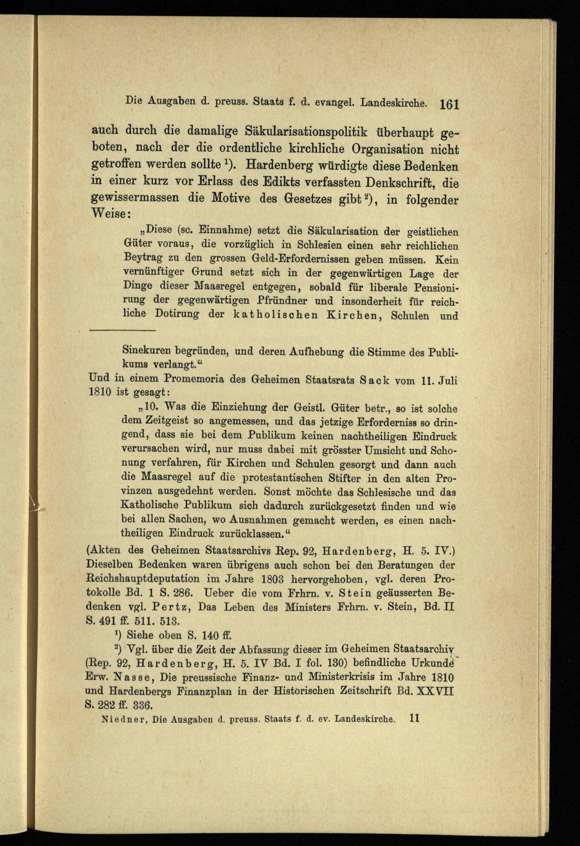Die Ausgaben des preussischen Staats für die evangelische Landeskirche der älteren Provinzen : ein Beitrag zur Geschichte der evangelischen Kirchenverfassung in Preussen / von Johannes Niedner