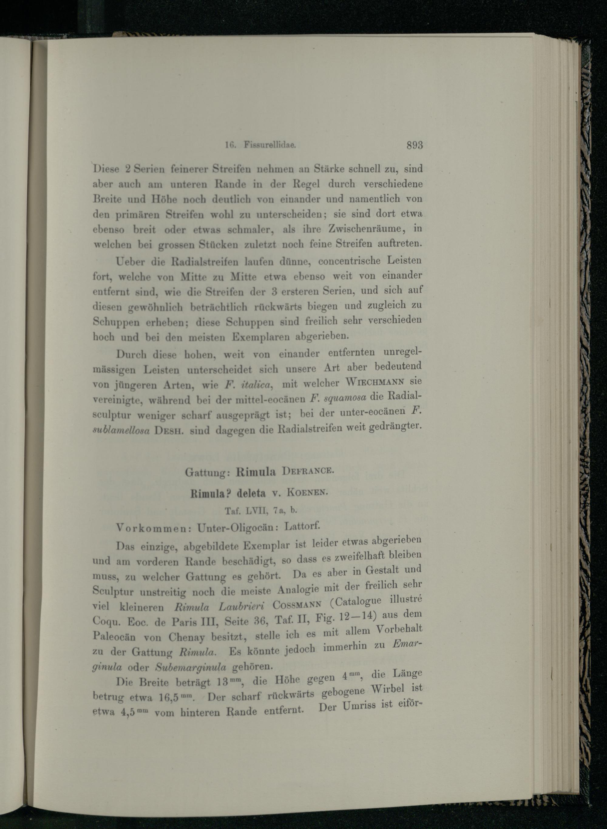 H. 4 (1892) Rissoidae - Littorinidae - Turbinidae - Haliotidae - Fissurellidae - Calyptraeidae - Patellidae. II. Gastropoda Opisthobranchiata. III Gastropoda Polyplacophora. 2. Scaphopoda - 3. Pteropoda - 4. Cephalopoda / A. von Koenen