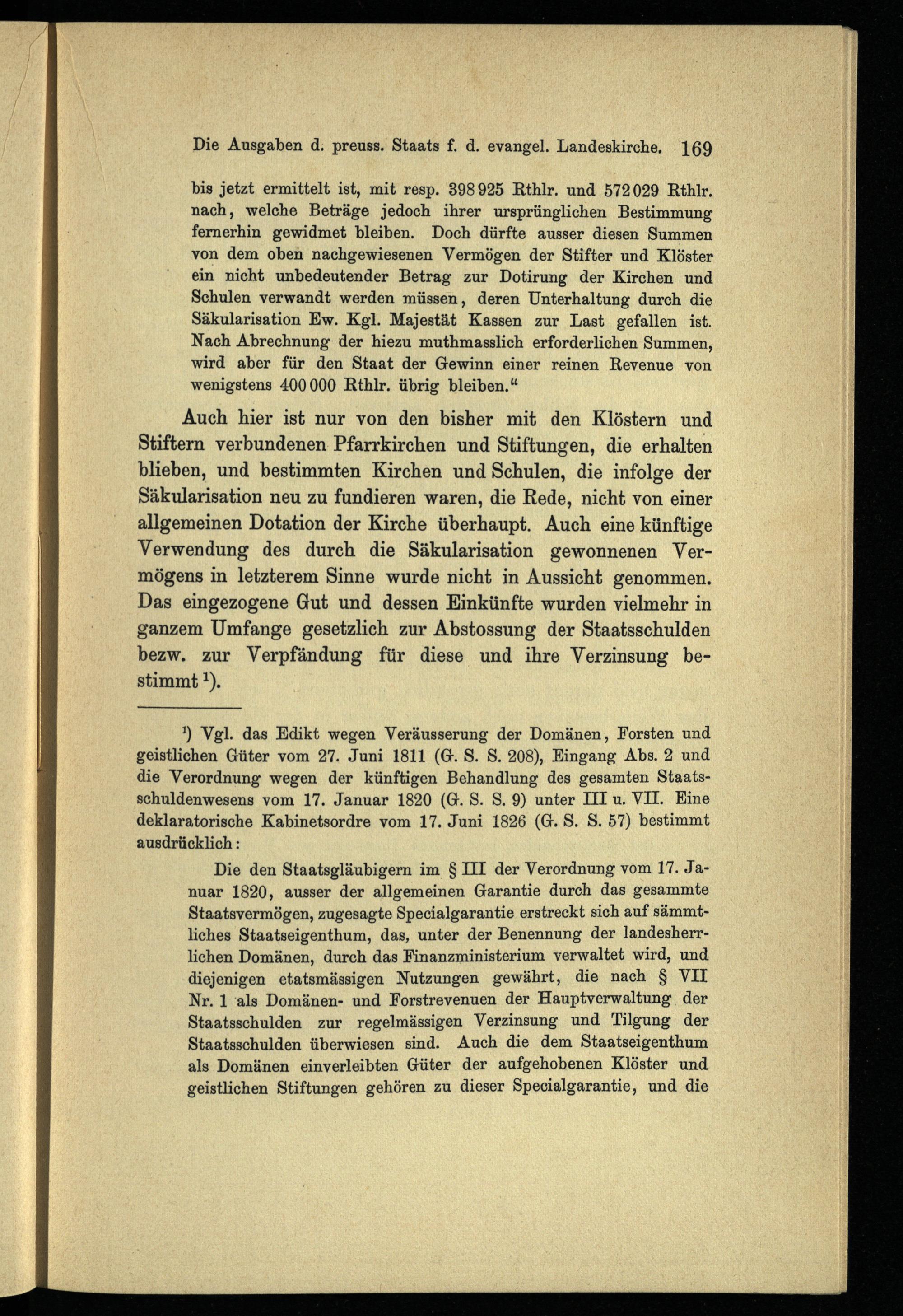 Die Ausgaben des preussischen Staats für die evangelische Landeskirche der älteren Provinzen : ein Beitrag zur Geschichte der evangelischen Kirchenverfassung in Preussen / von Johannes Niedner