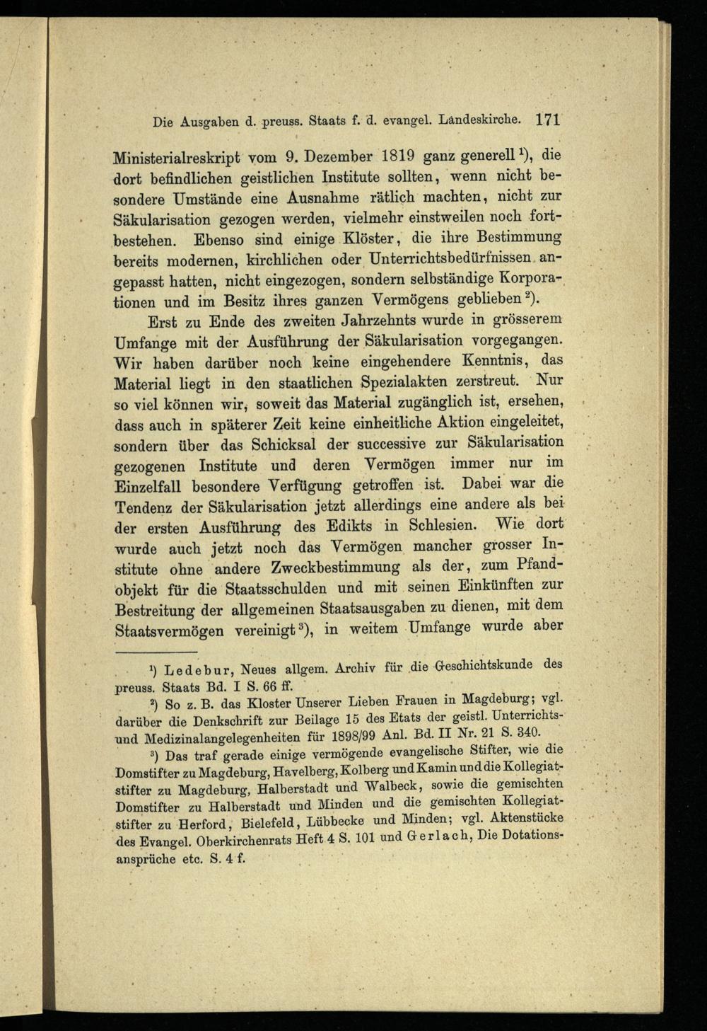 Die Ausgaben des preussischen Staats für die evangelische Landeskirche der älteren Provinzen : ein Beitrag zur Geschichte der evangelischen Kirchenverfassung in Preussen / von Johannes Niedner