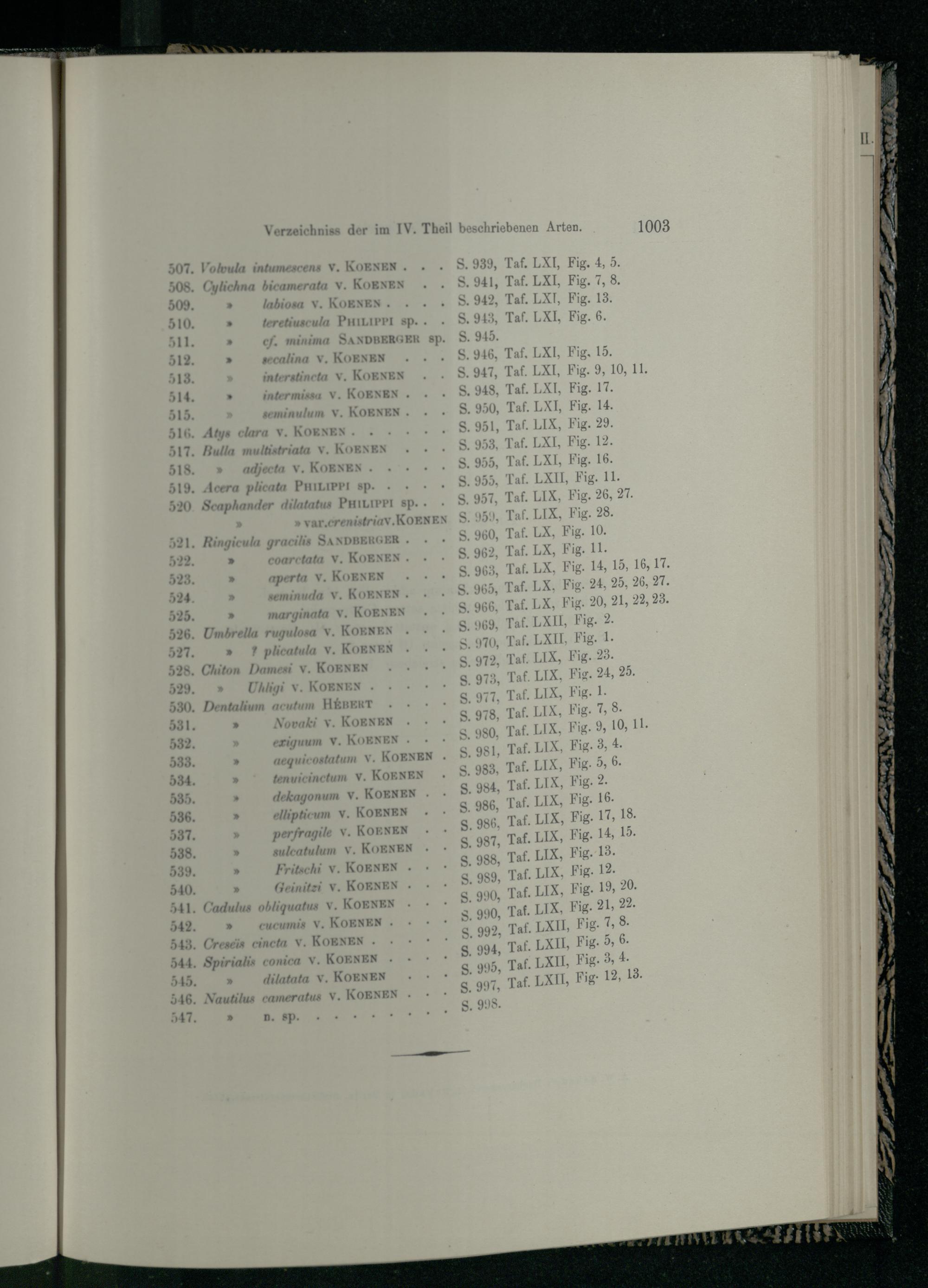H. 4 (1892) Rissoidae - Littorinidae - Turbinidae - Haliotidae - Fissurellidae - Calyptraeidae - Patellidae. II. Gastropoda Opisthobranchiata. III Gastropoda Polyplacophora. 2. Scaphopoda - 3. Pteropoda - 4. Cephalopoda / A. von Koenen