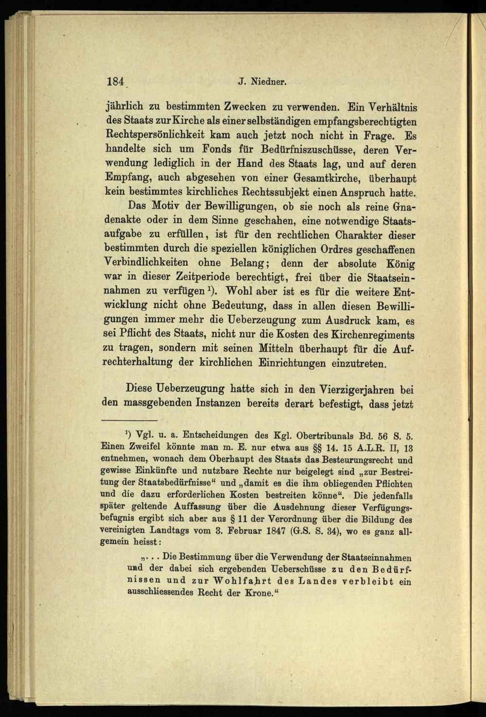 Die Ausgaben des preussischen Staats für die evangelische Landeskirche der älteren Provinzen : ein Beitrag zur Geschichte der evangelischen Kirchenverfassung in Preussen / von Johannes Niedner