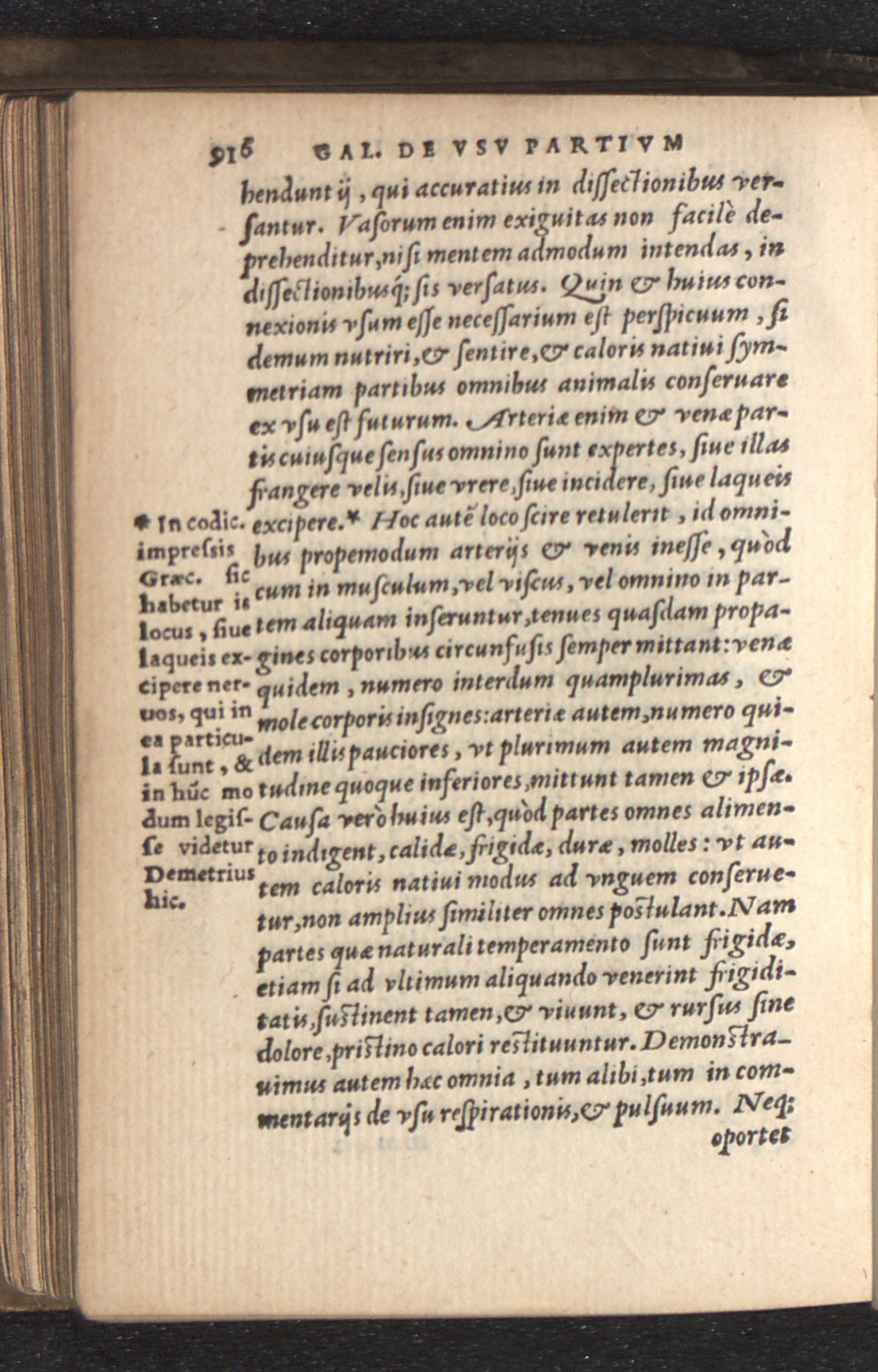 Cl. Gal. De Vsv Partivm Corporis Hvmani Libri XVII. / Nicolao Regio Calabre interprete, ex plurium Græcorum exemplarium collatione castigatiores quàm vnquam aliâs ...