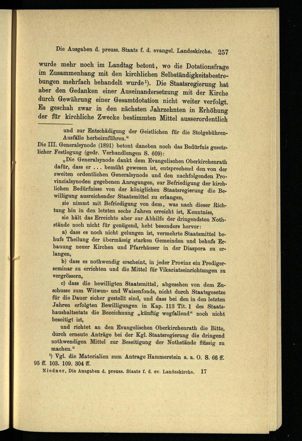 Die Ausgaben des preussischen Staats für die evangelische Landeskirche der älteren Provinzen : ein Beitrag zur Geschichte der evangelischen Kirchenverfassung in Preussen / von Johannes Niedner