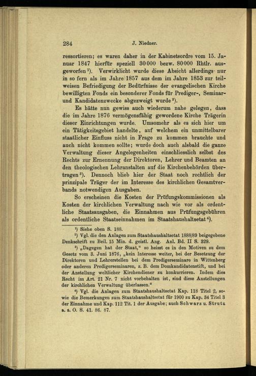 Die Ausgaben des preussischen Staats für die evangelische Landeskirche der älteren Provinzen : ein Beitrag zur Geschichte der evangelischen Kirchenverfassung in Preussen / von Johannes Niedner