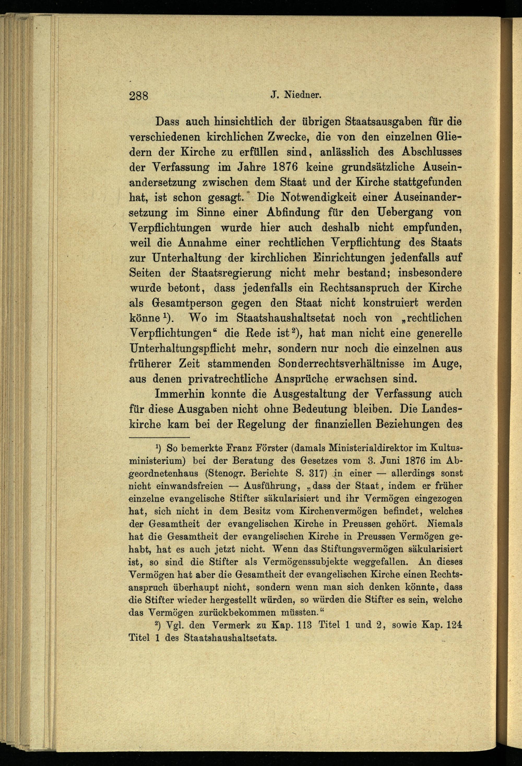 Die Ausgaben des preussischen Staats für die evangelische Landeskirche der älteren Provinzen : ein Beitrag zur Geschichte der evangelischen Kirchenverfassung in Preussen / von Johannes Niedner
