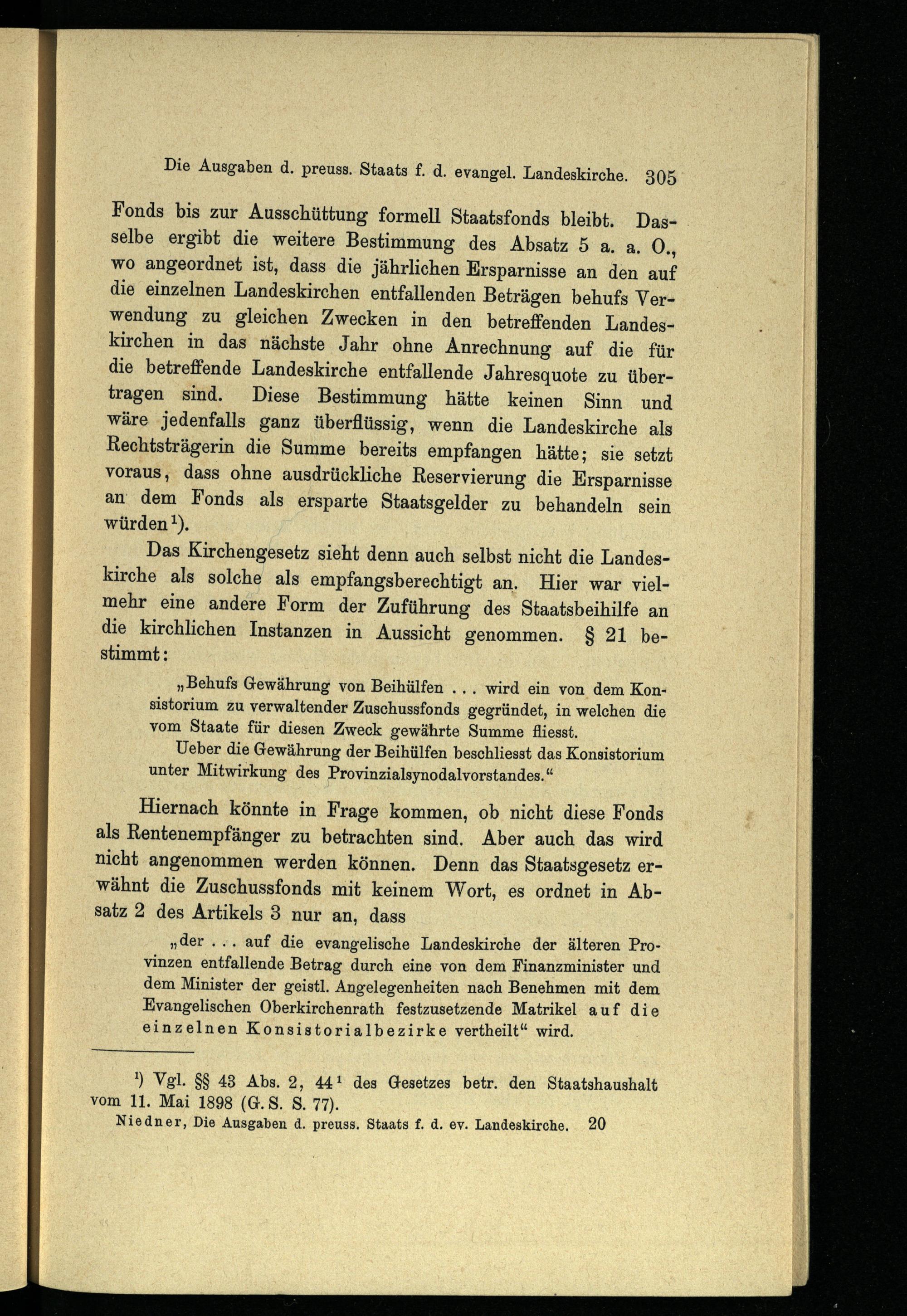 Die Ausgaben des preussischen Staats für die evangelische Landeskirche der älteren Provinzen : ein Beitrag zur Geschichte der evangelischen Kirchenverfassung in Preussen / von Johannes Niedner