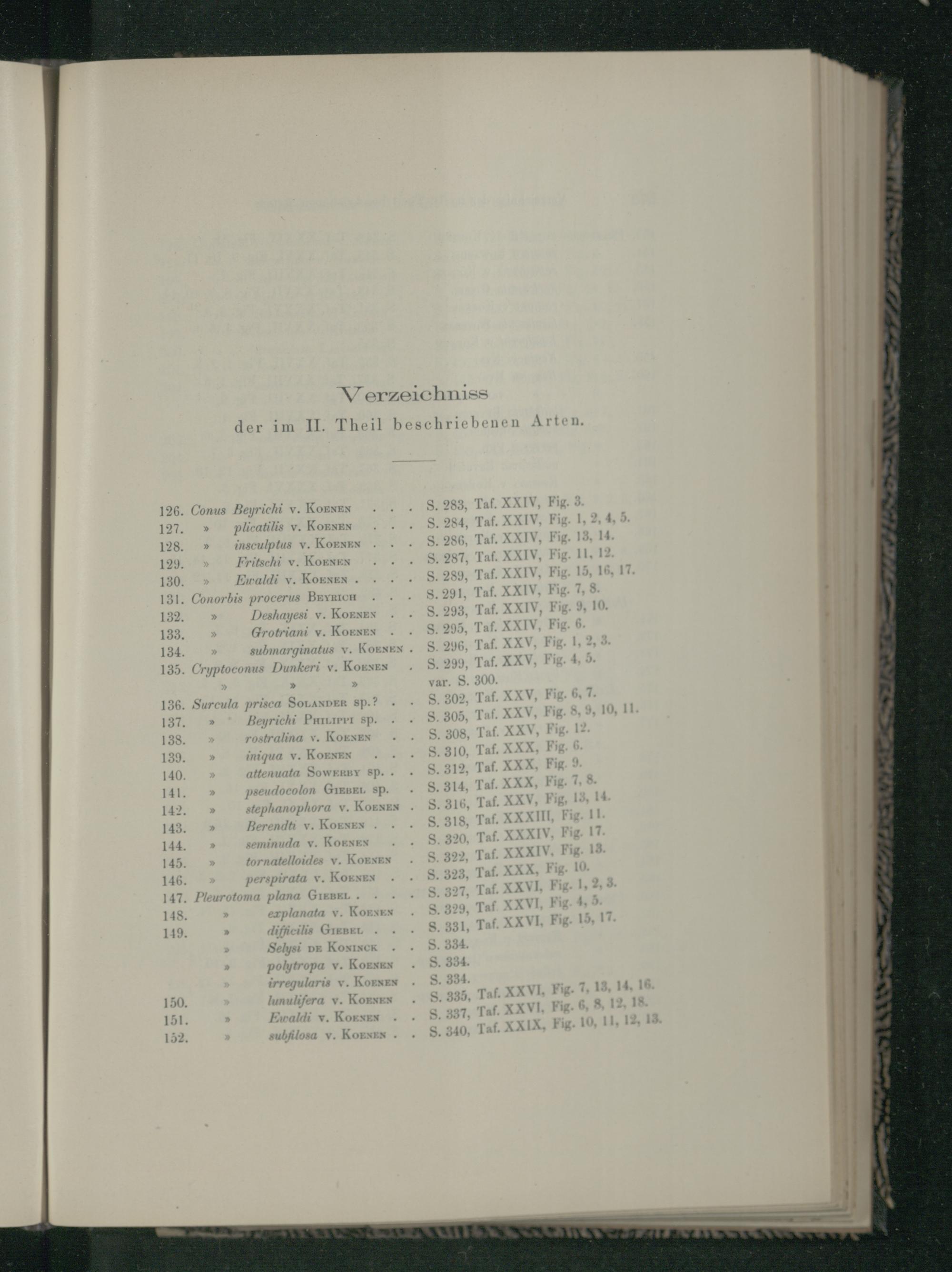 Verzeichnis der im II. Theil beschriebenen Arten.