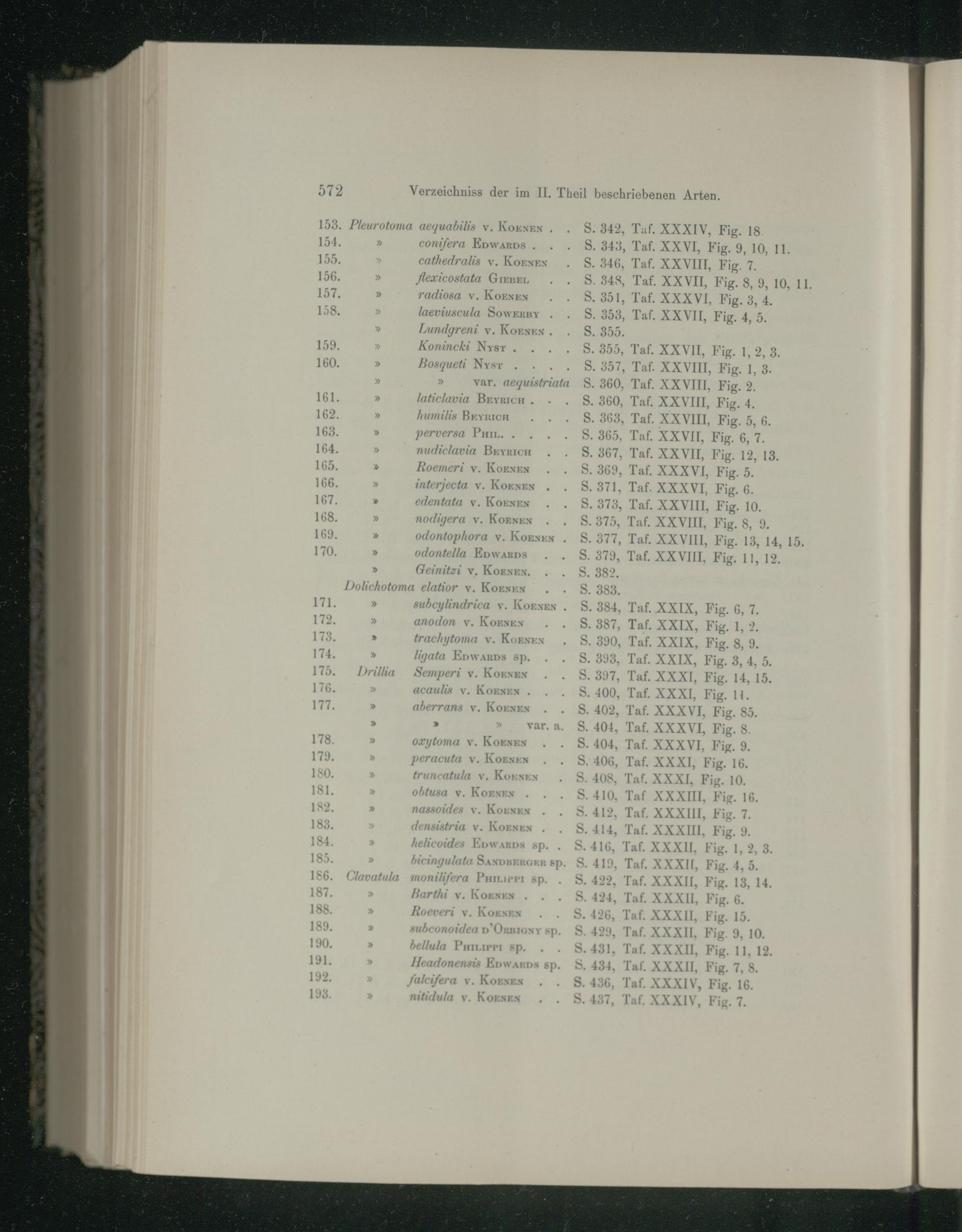 Verzeichnis der im II. Theil beschriebenen Arten.