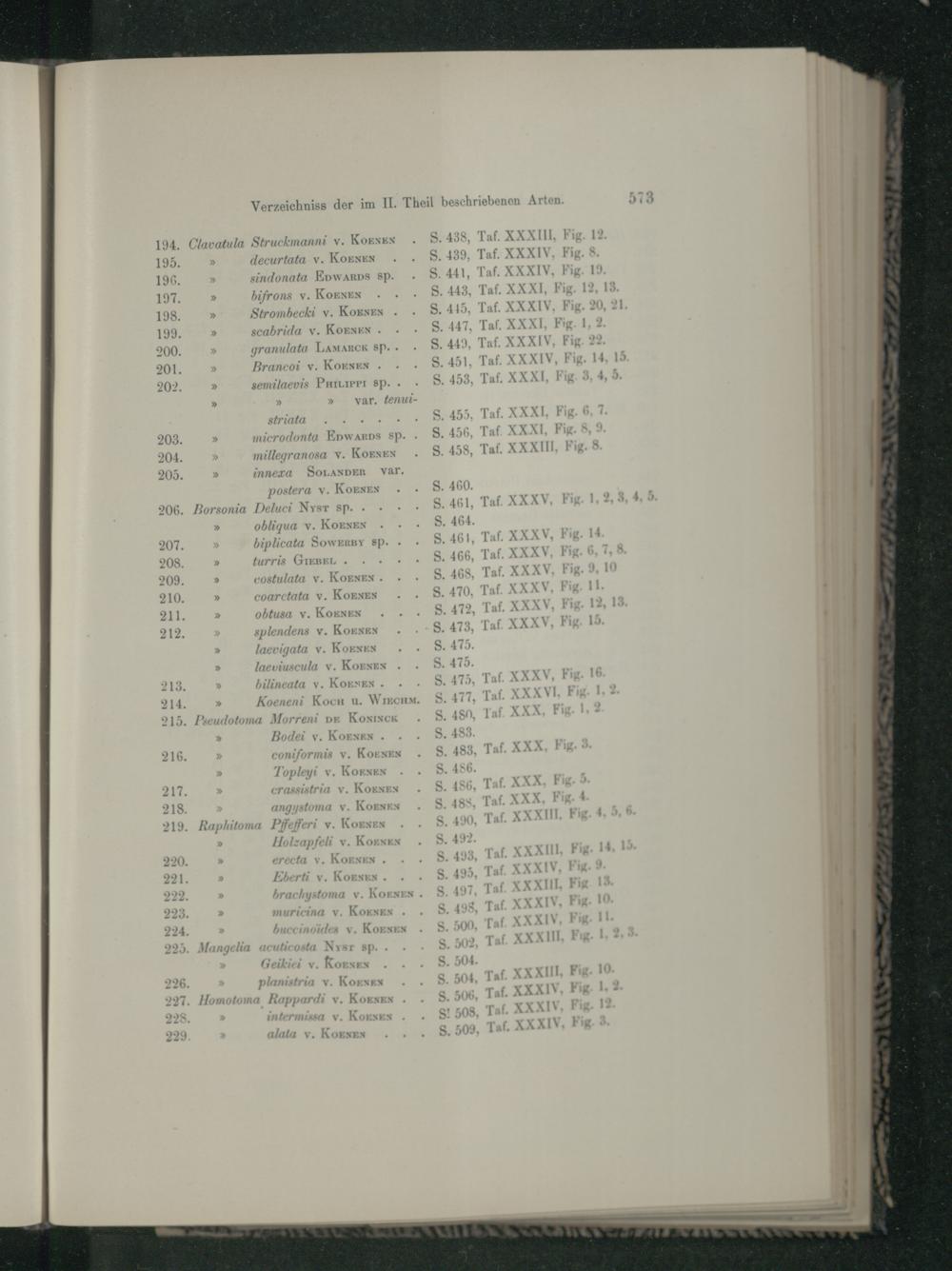 Verzeichnis der im II. Theil beschriebenen Arten.