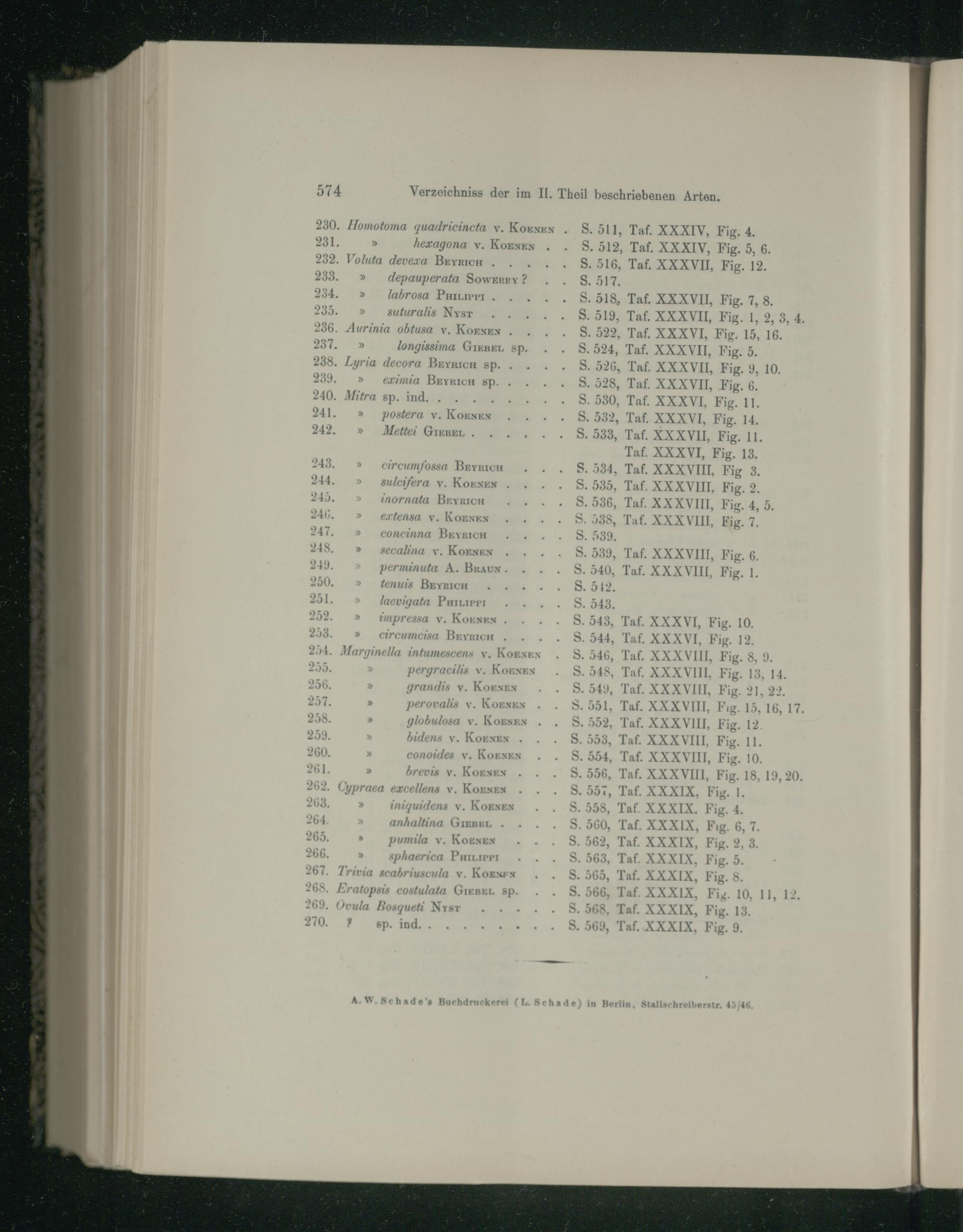 Verzeichnis der im II. Theil beschriebenen Arten.