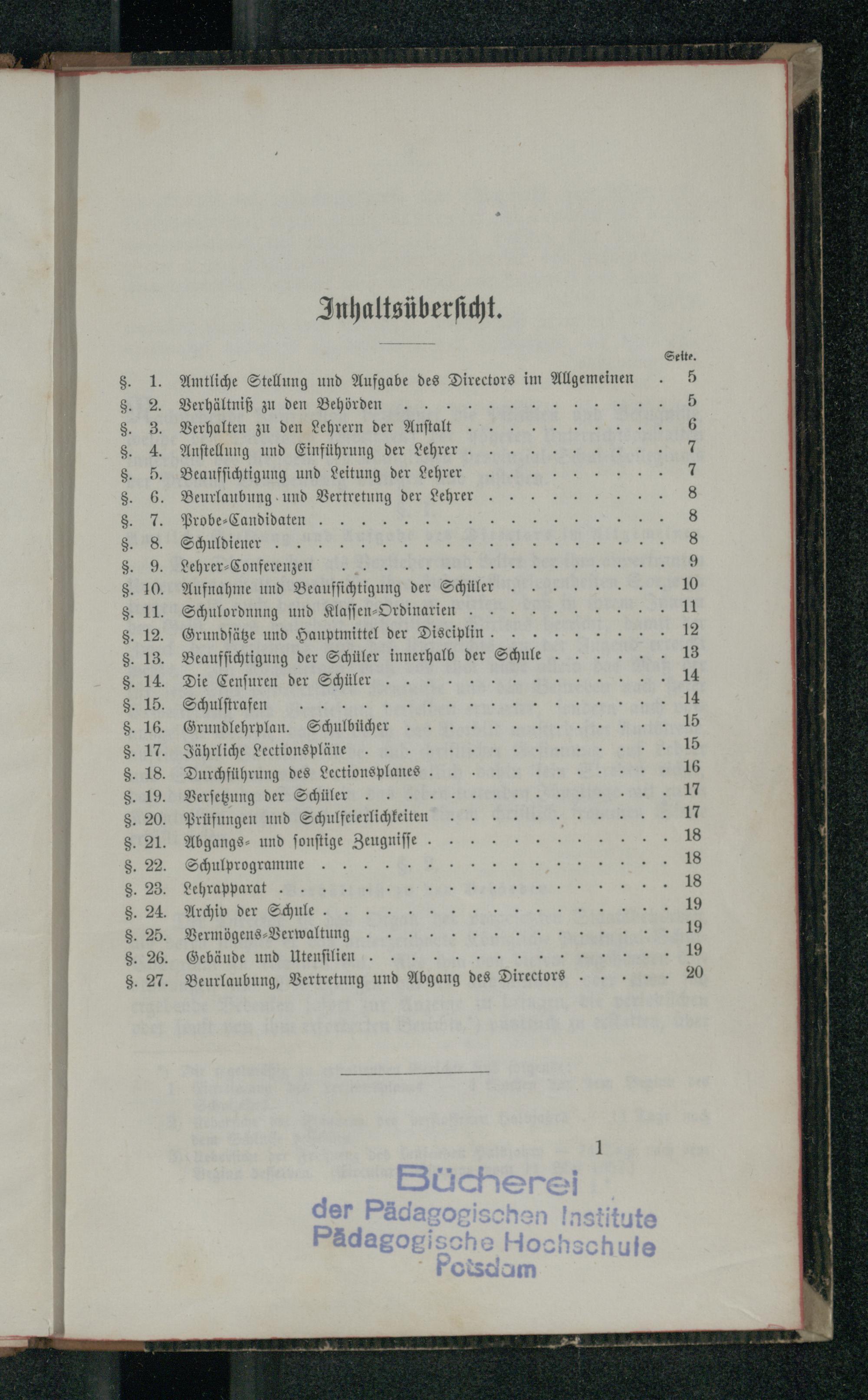 Instruction für die Lehrer und Ordinarien an den höheren Unterrichtsanstalten der Provinz Brandenburg. : Amtlich.