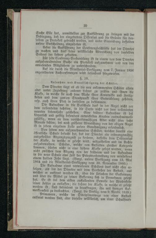 §. 10. Aufnahme und Beaufsichtigung der Schüler.
