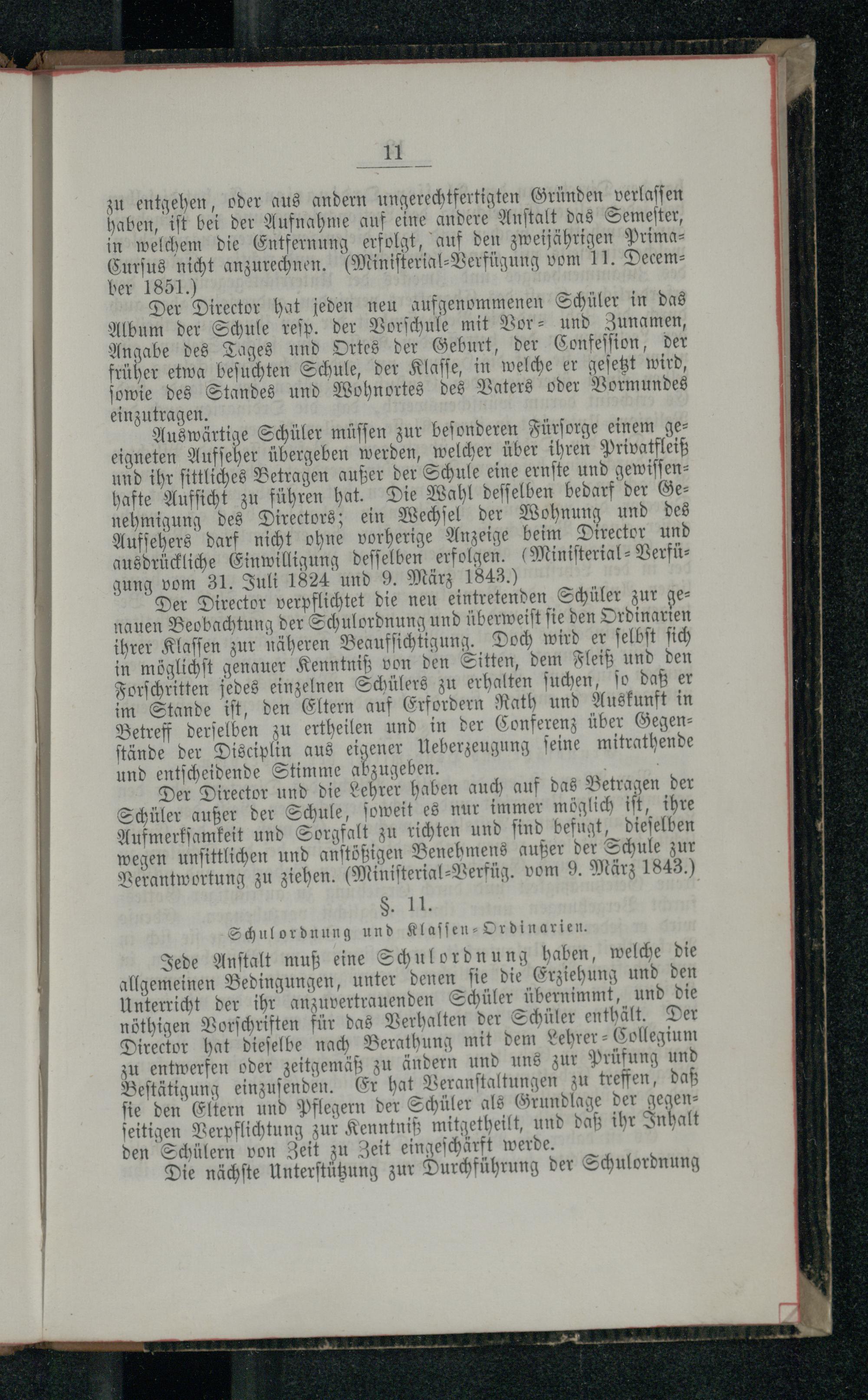 §. 11. Schulordnung und Klassen-Ordinarien.