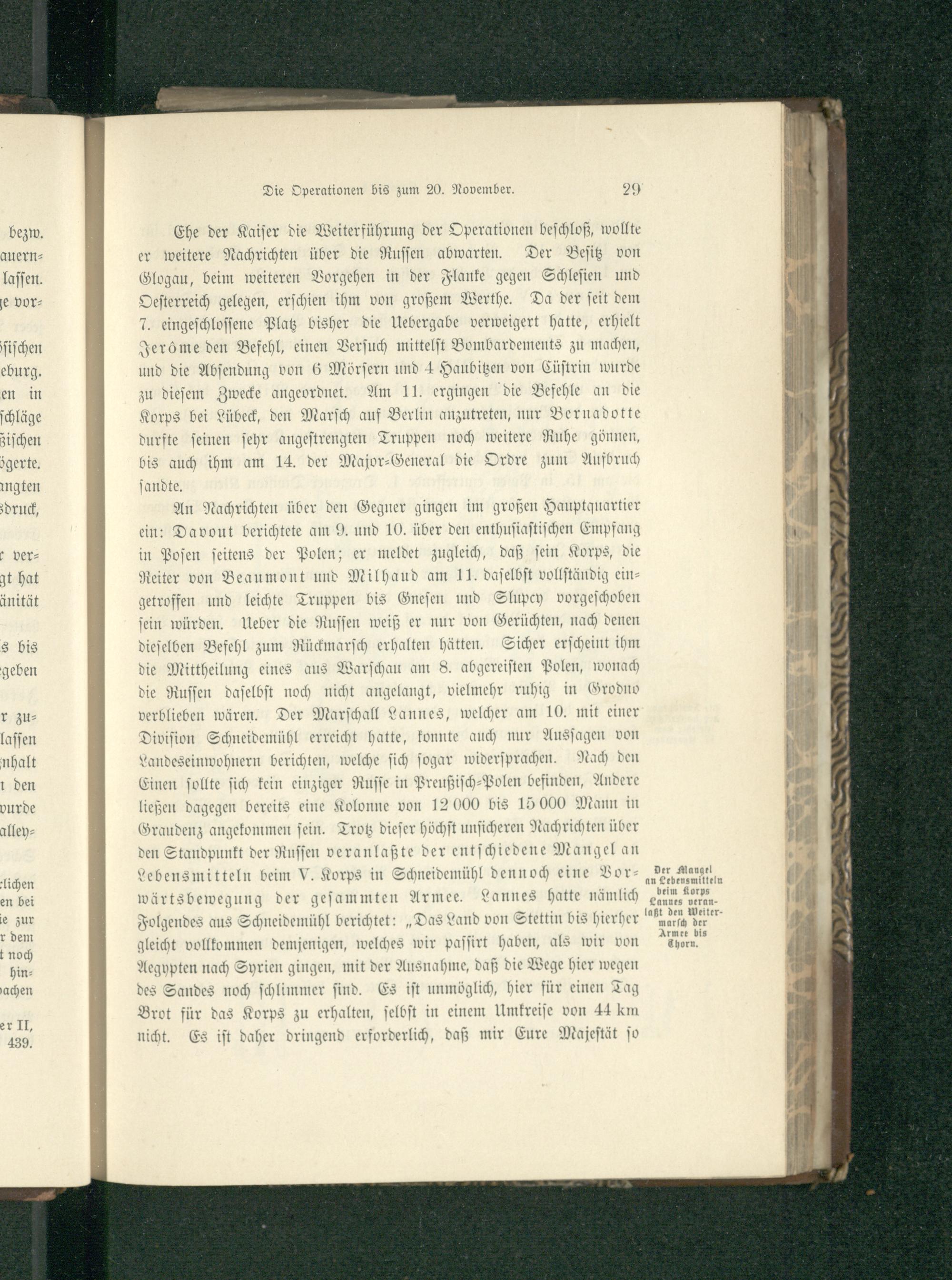 Kapitel II. Blockadedekret gegen England. Reise Napoleons nach Polen vom 25. bis 27. November. Der polnische Kriegsschauplatz. Die preußische Verwaltung unterläßt die Fortschaffung der Vorräthe. Anordnungen des Kaisers für den Unterhalt der Armee.