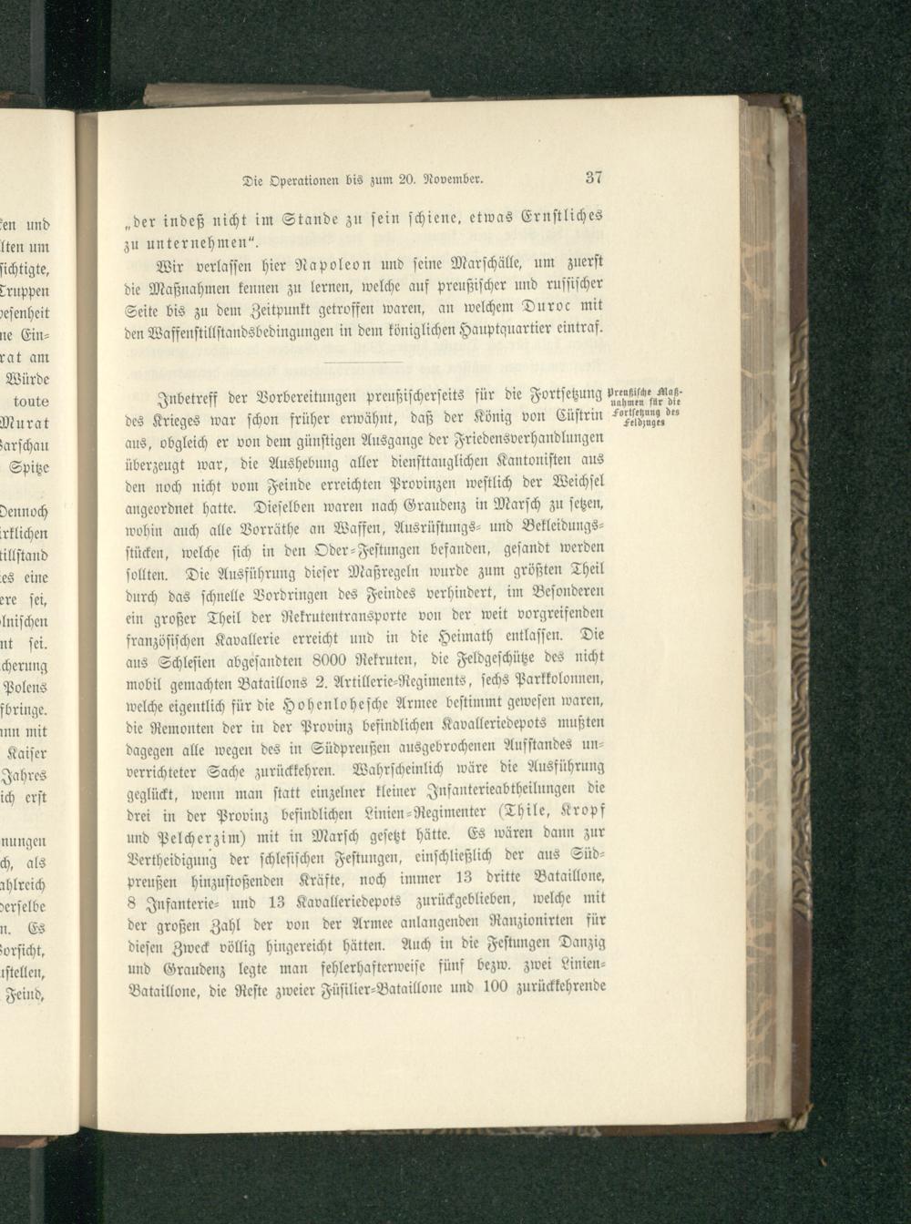 Kapitel I. Beiderseitige Vorbereitungen für den neuen Feldzug und die Operationen bis zum 20. November. Abbruch der Friedensverhandlungen und unbedingterAnschluß Preußens an Rußland.
