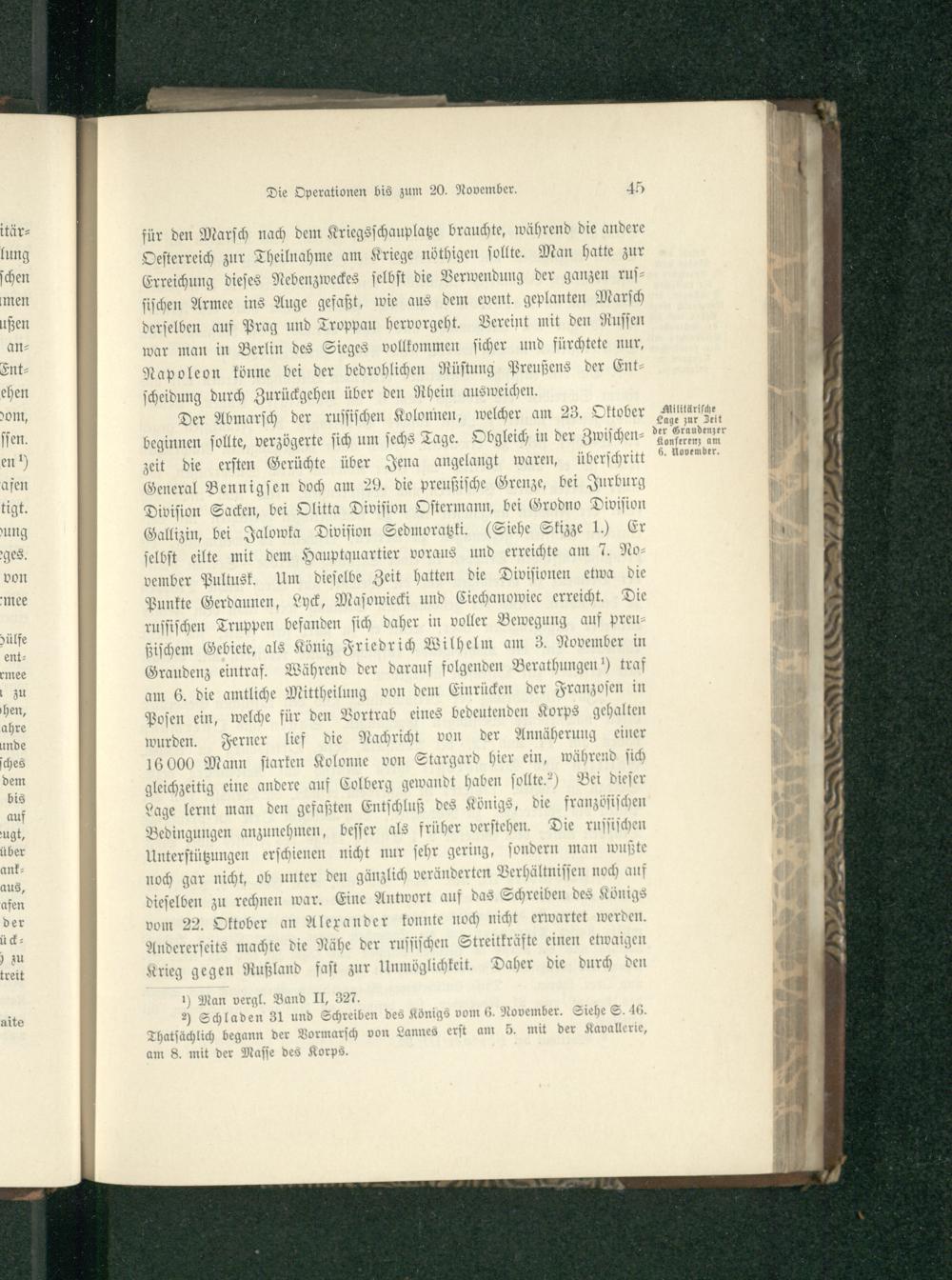 Kapitel I. Beiderseitige Vorbereitungen für den neuen Feldzug und die Operationen bis zum 20. November. Abbruch der Friedensverhandlungen und unbedingterAnschluß Preußens an Rußland.