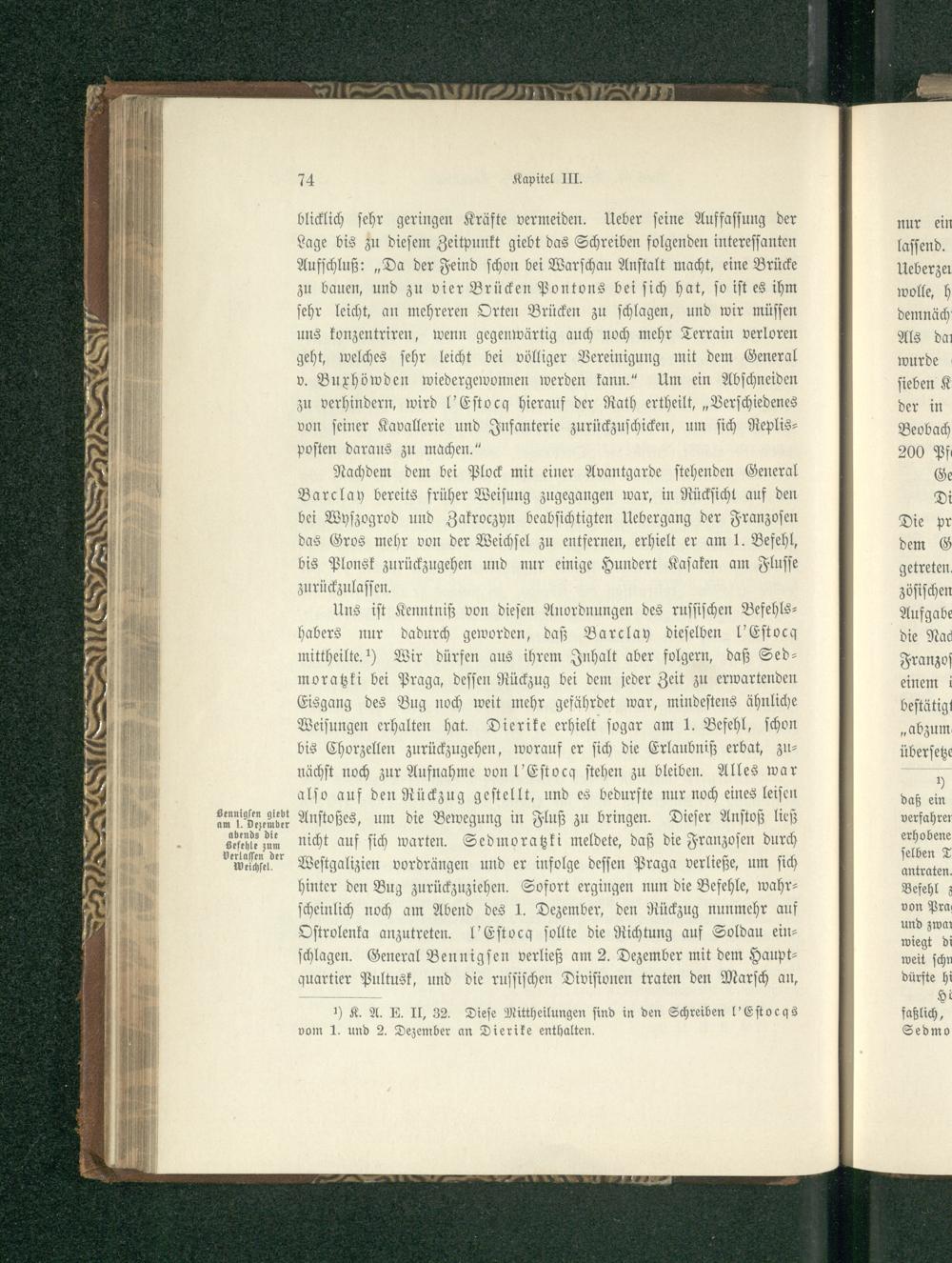 Kapitel V. Die entscheidenden Operationen mit den Gefechten von Czarnowo, Pultusk, Golymin und Soldau. Rückzug der Verbündeten und die Befehle Napoleons für die Einnahme von Winterquartieren. Vom 23. Dezember 1806 bis zum 14. bzw. 7. Januar 1807.