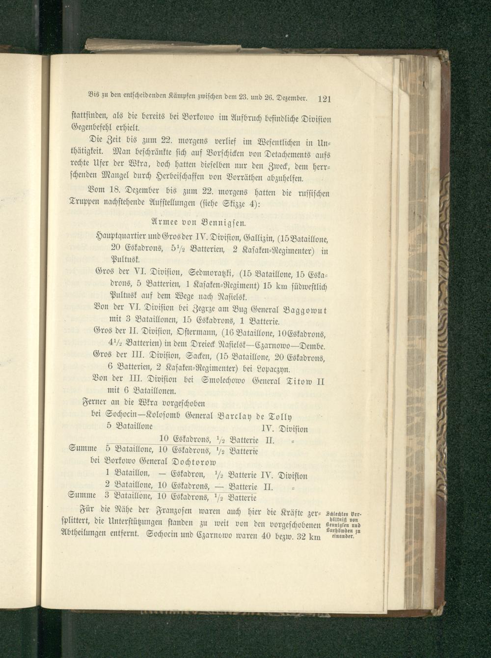 Kapitel V. Die entscheidenden Operationen mit den Gefechten von Czarnowo, Pultusk, Golymin und Soldau. Rückzug der Verbündeten und die Befehle Napoleons für die Einnahme von Winterquartieren. Vom 23. Dezember 1806 bis zum 14. bzw. 7. Januar 1807.