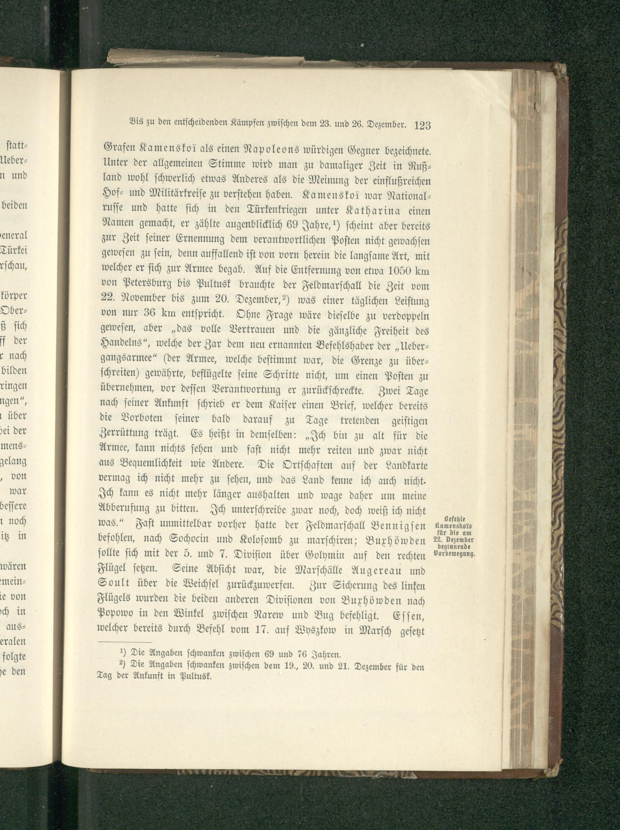 Kapitel V. Die entscheidenden Operationen mit den Gefechten von Czarnowo, Pultusk, Golymin und Soldau. Rückzug der Verbündeten und die Befehle Napoleons für die Einnahme von Winterquartieren. Vom 23. Dezember 1806 bis zum 14. bzw. 7. Januar 1807.