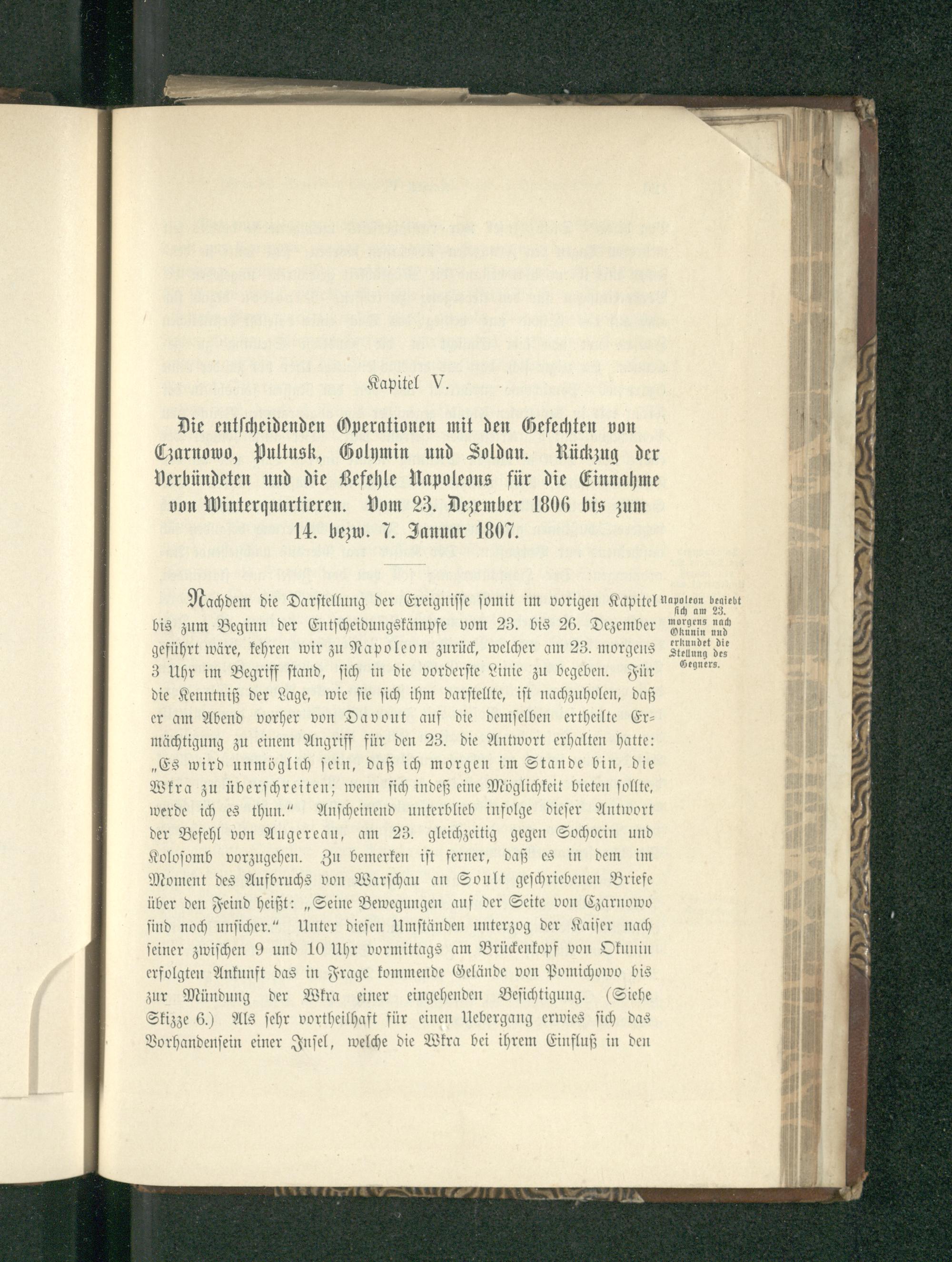 Kapitel V. Die entscheidenden Operationen mit den Gefechten von Czarnowo, Pultusk, Golymin und Soldau. Rückzug der Verbündeten und die Befehle Napoleons für die Einnahme von Winterquartieren. Vom 23. Dezember 1806 bis zum 14. bzw. 7. Januar 1807.