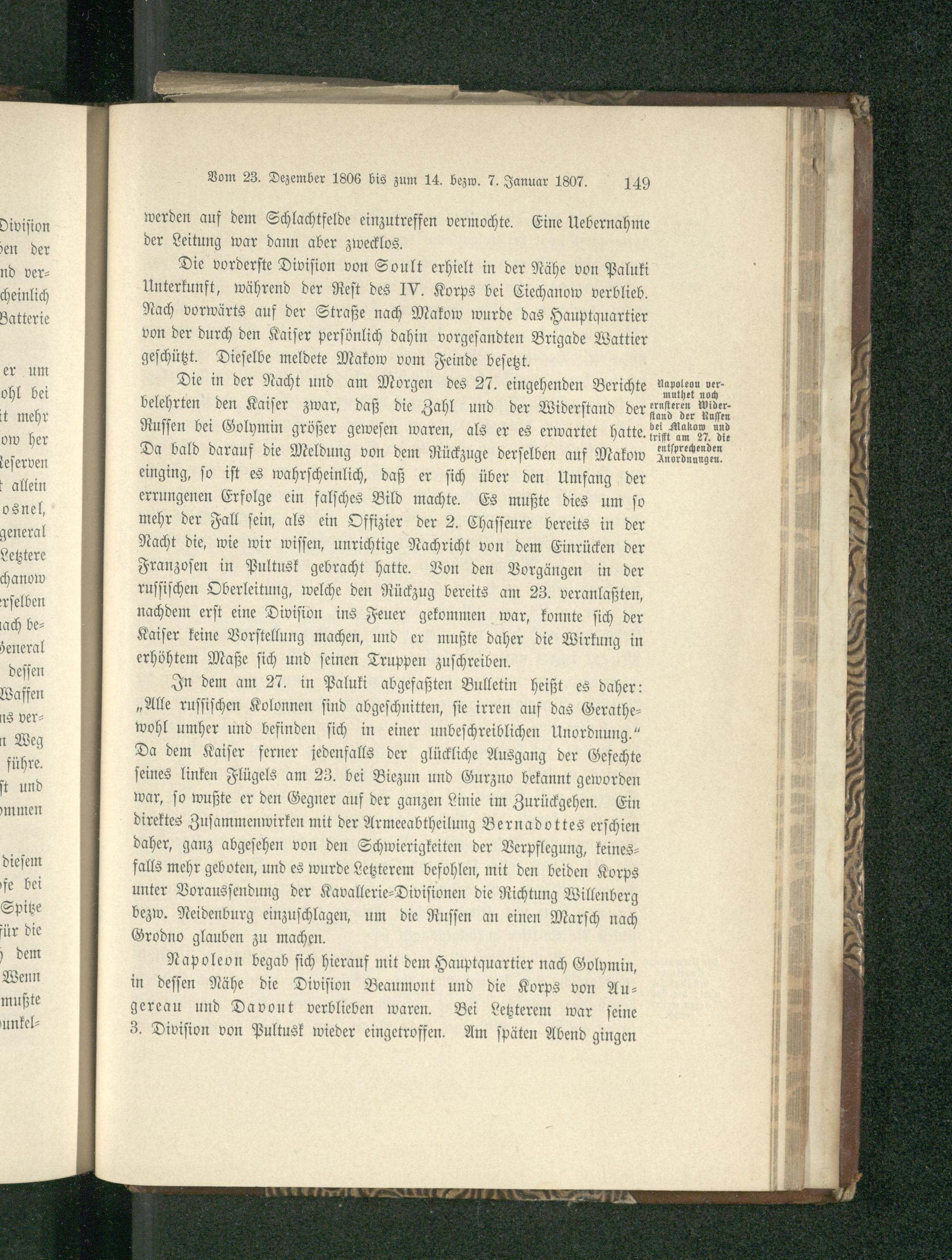 Kapitel V. Die entscheidenden Operationen mit den Gefechten von Czarnowo, Pultusk, Golymin und Soldau. Rückzug der Verbündeten und die Befehle Napoleons für die Einnahme von Winterquartieren. Vom 23. Dezember 1806 bis zum 14. bzw. 7. Januar 1807.