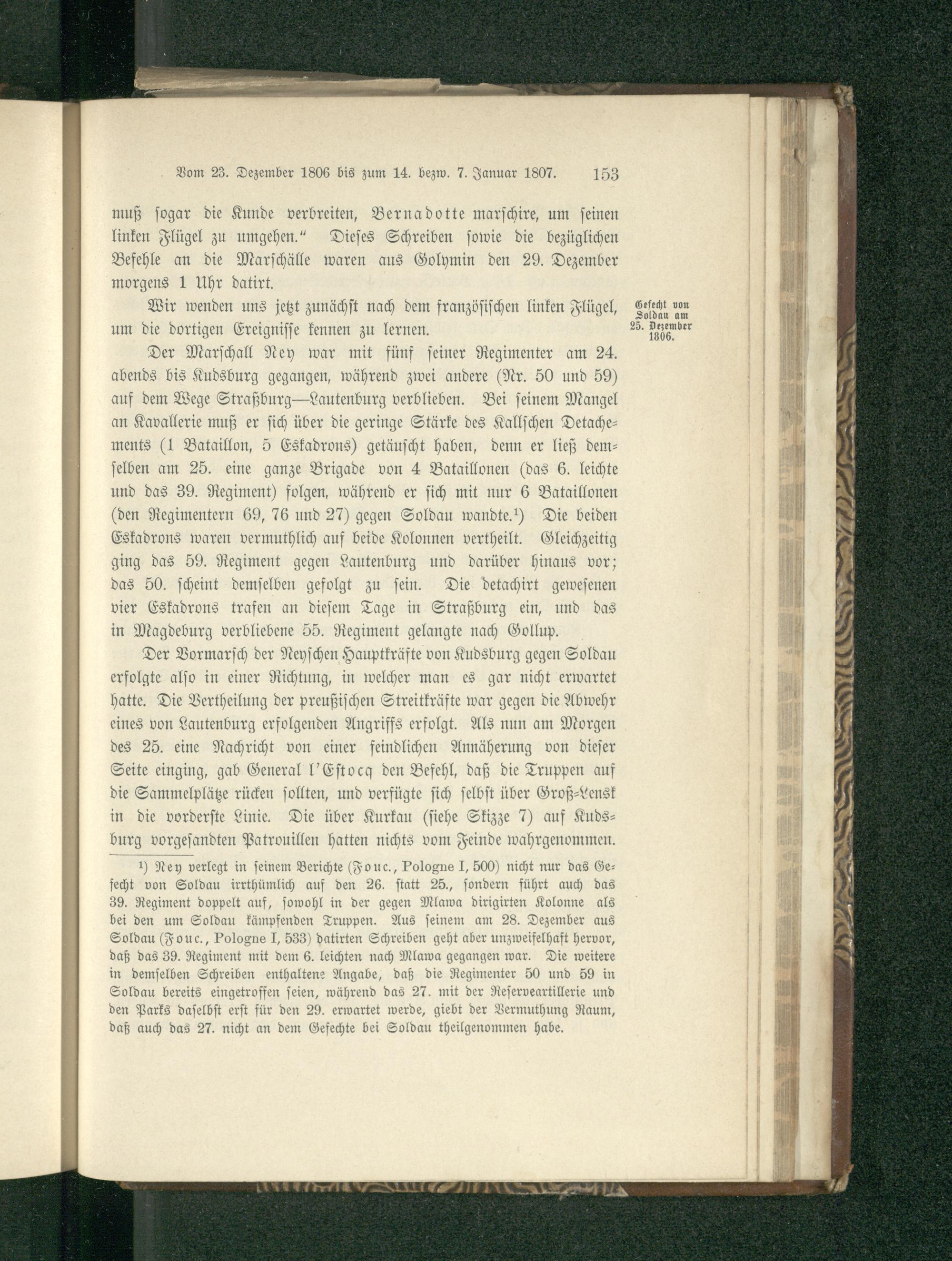 Kapitel V. Die entscheidenden Operationen mit den Gefechten von Czarnowo, Pultusk, Golymin und Soldau. Rückzug der Verbündeten und die Befehle Napoleons für die Einnahme von Winterquartieren. Vom 23. Dezember 1806 bis zum 14. bzw. 7. Januar 1807.