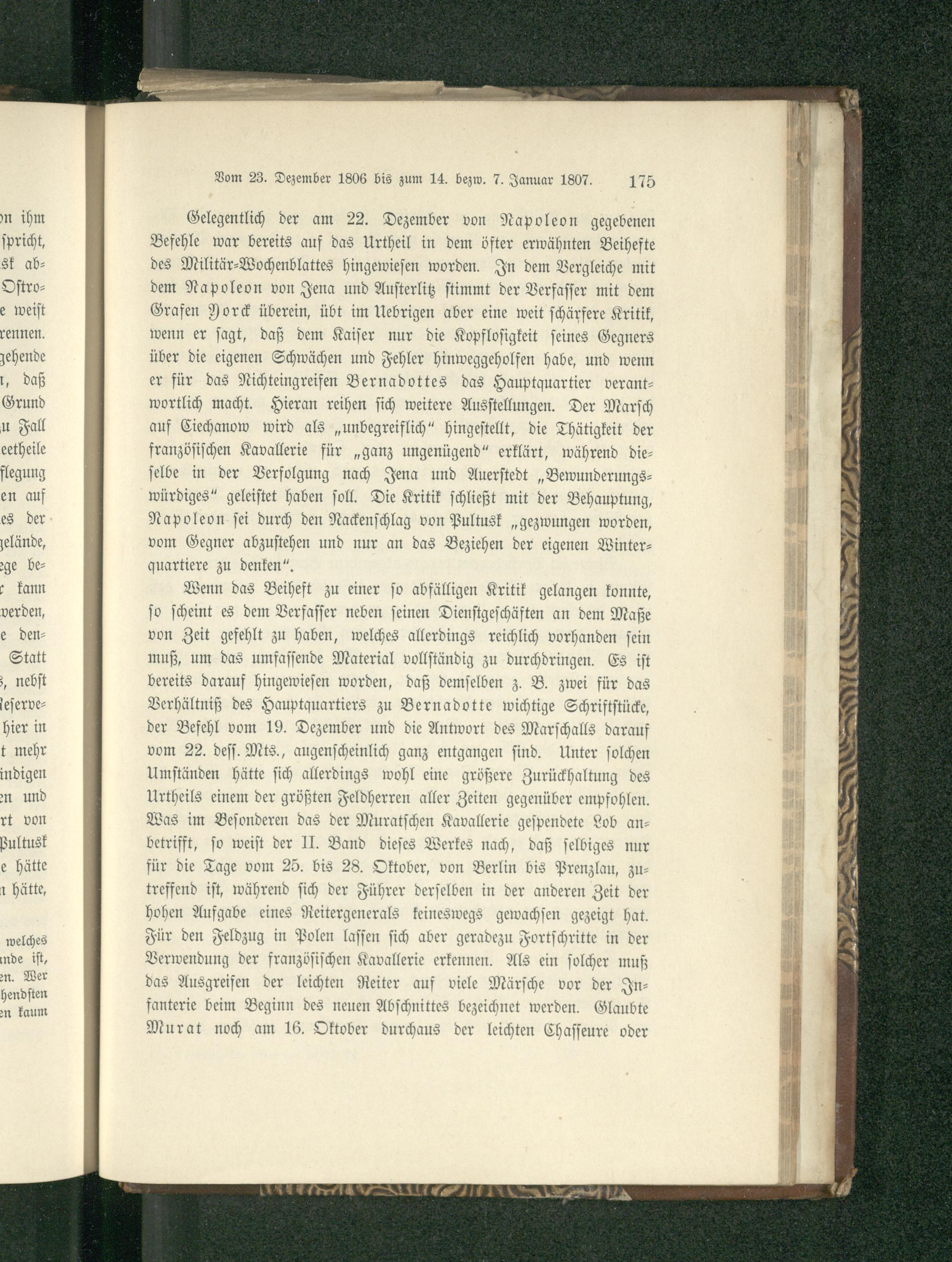 Kapitel V. Die entscheidenden Operationen mit den Gefechten von Czarnowo, Pultusk, Golymin und Soldau. Rückzug der Verbündeten und die Befehle Napoleons für die Einnahme von Winterquartieren. Vom 23. Dezember 1806 bis zum 14. bzw. 7. Januar 1807.