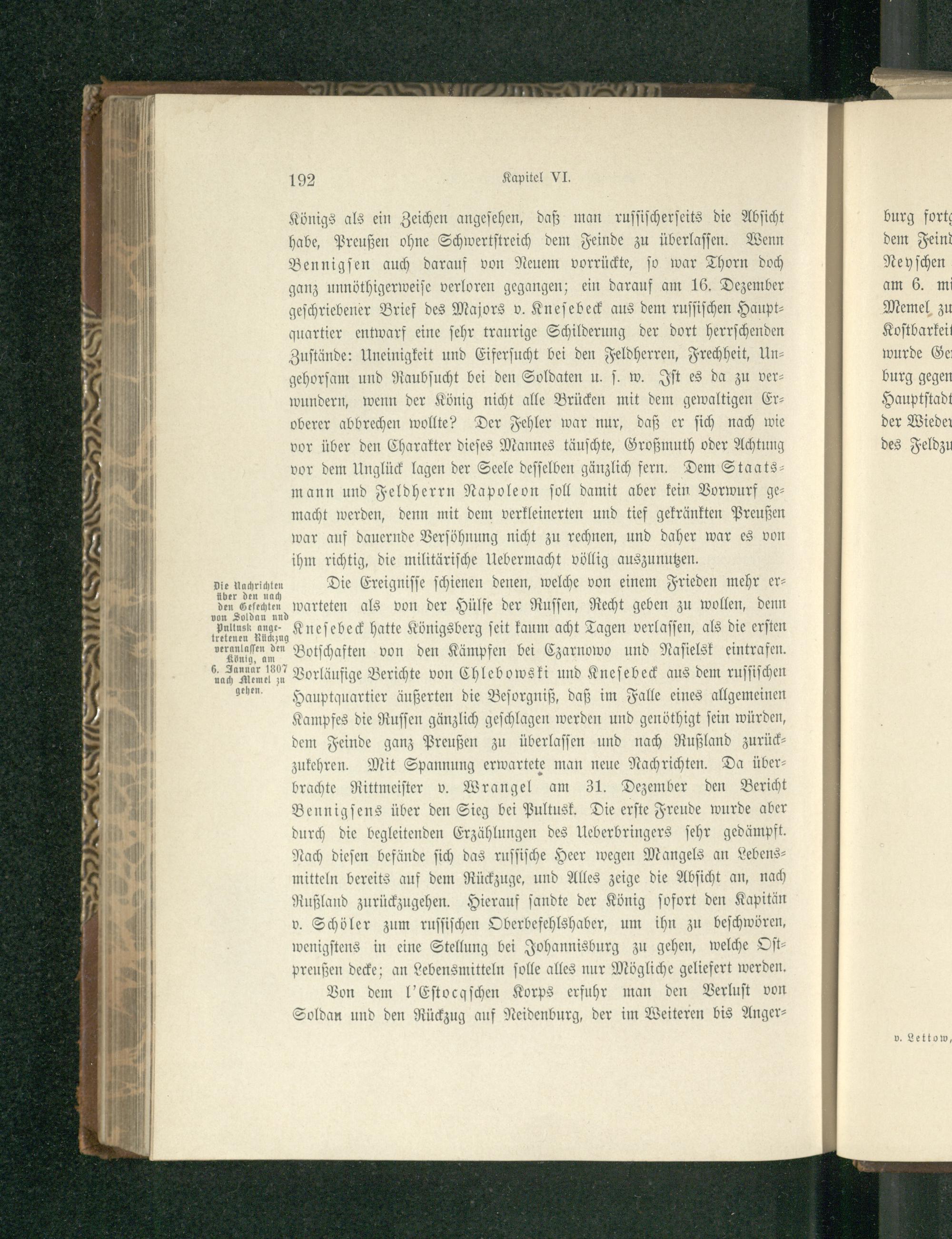 Kapitel V. Die entscheidenden Operationen mit den Gefechten von Czarnowo, Pultusk, Golymin und Soldau. Rückzug der Verbündeten und die Befehle Napoleons für die Einnahme von Winterquartieren. Vom 23. Dezember 1806 bis zum 14. bzw. 7. Januar 1807.