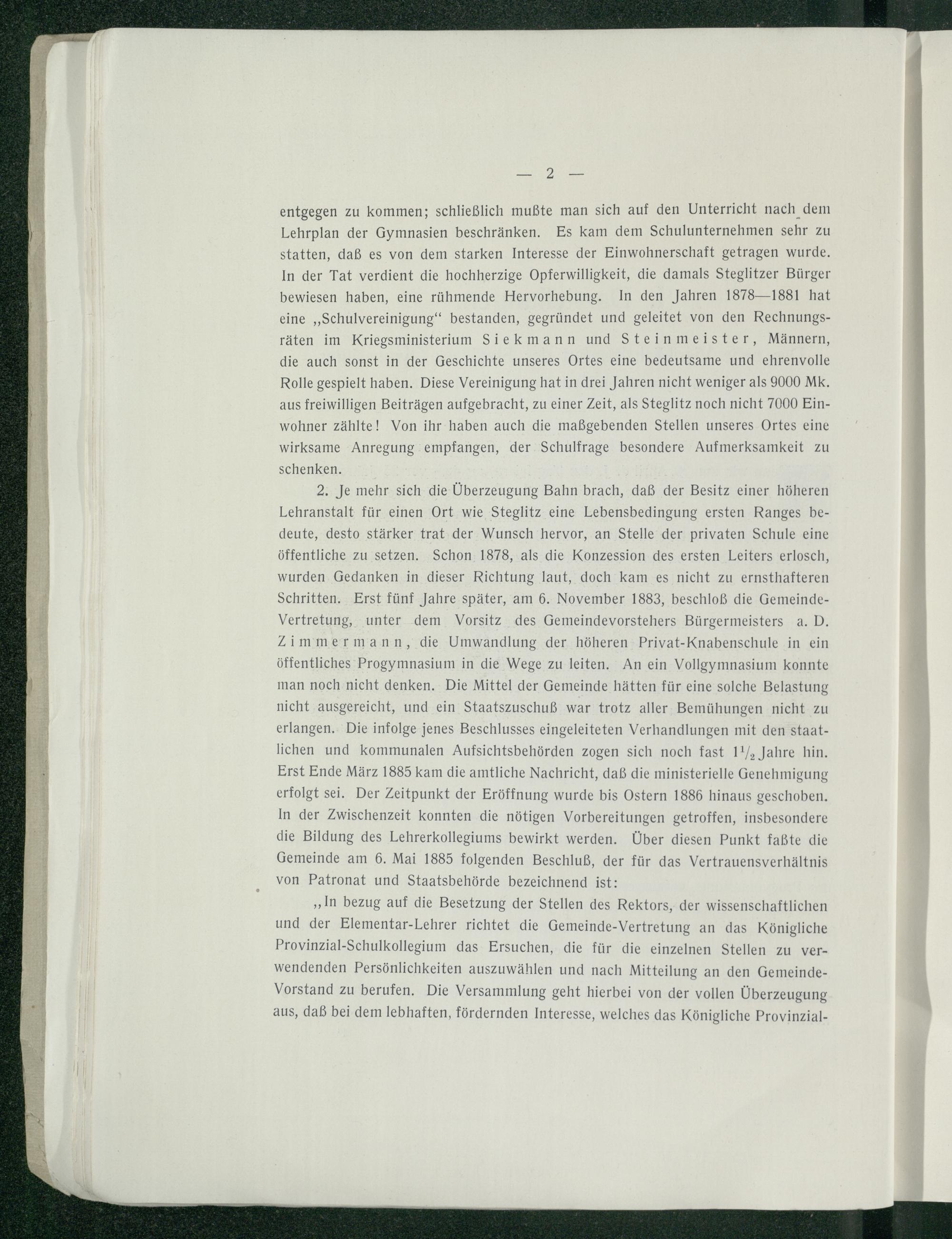 Das erste Vierteljahrhundert des Steglitzer Gymnasiums.