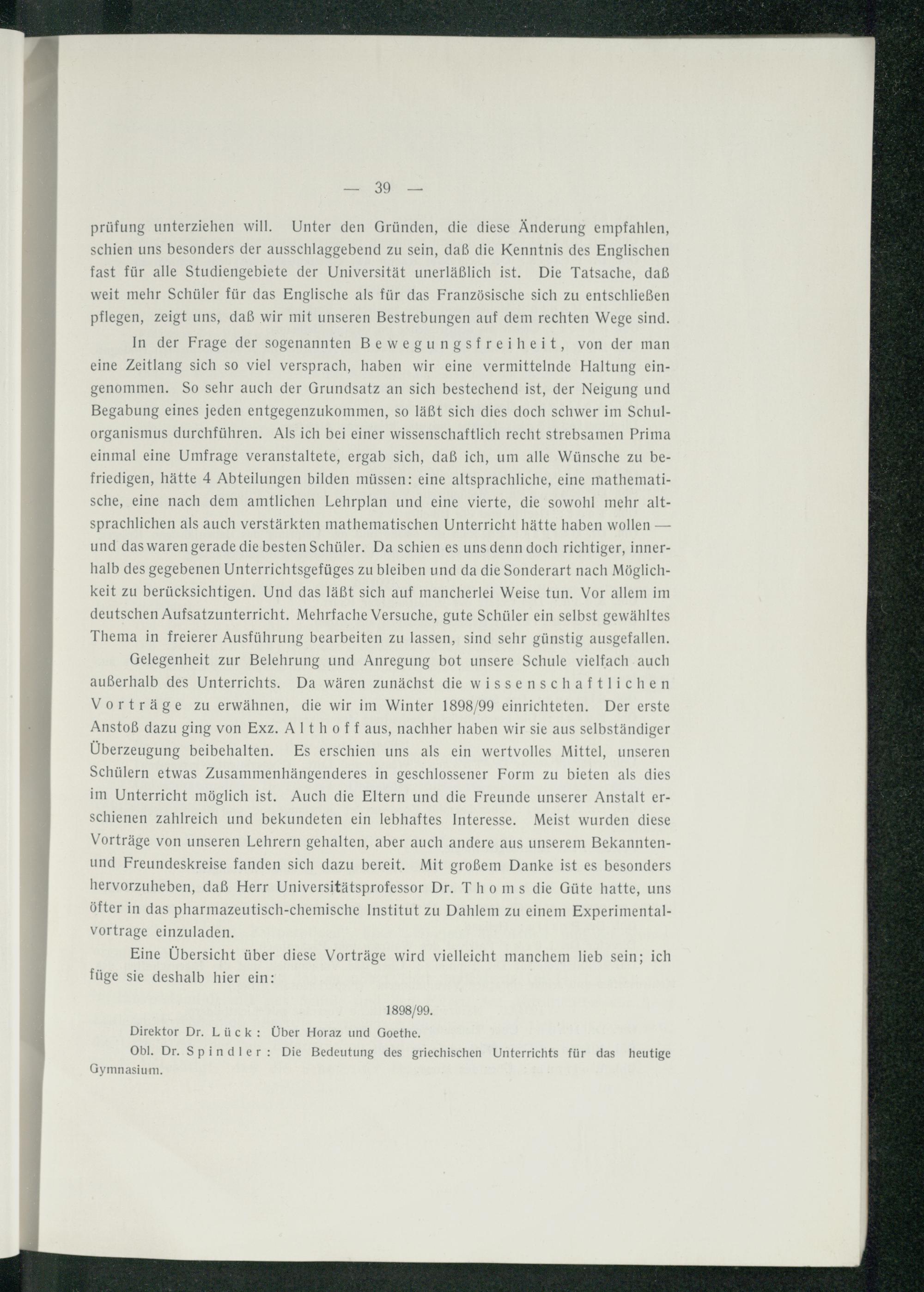 Das erste Vierteljahrhundert des Steglitzer Gymnasiums.