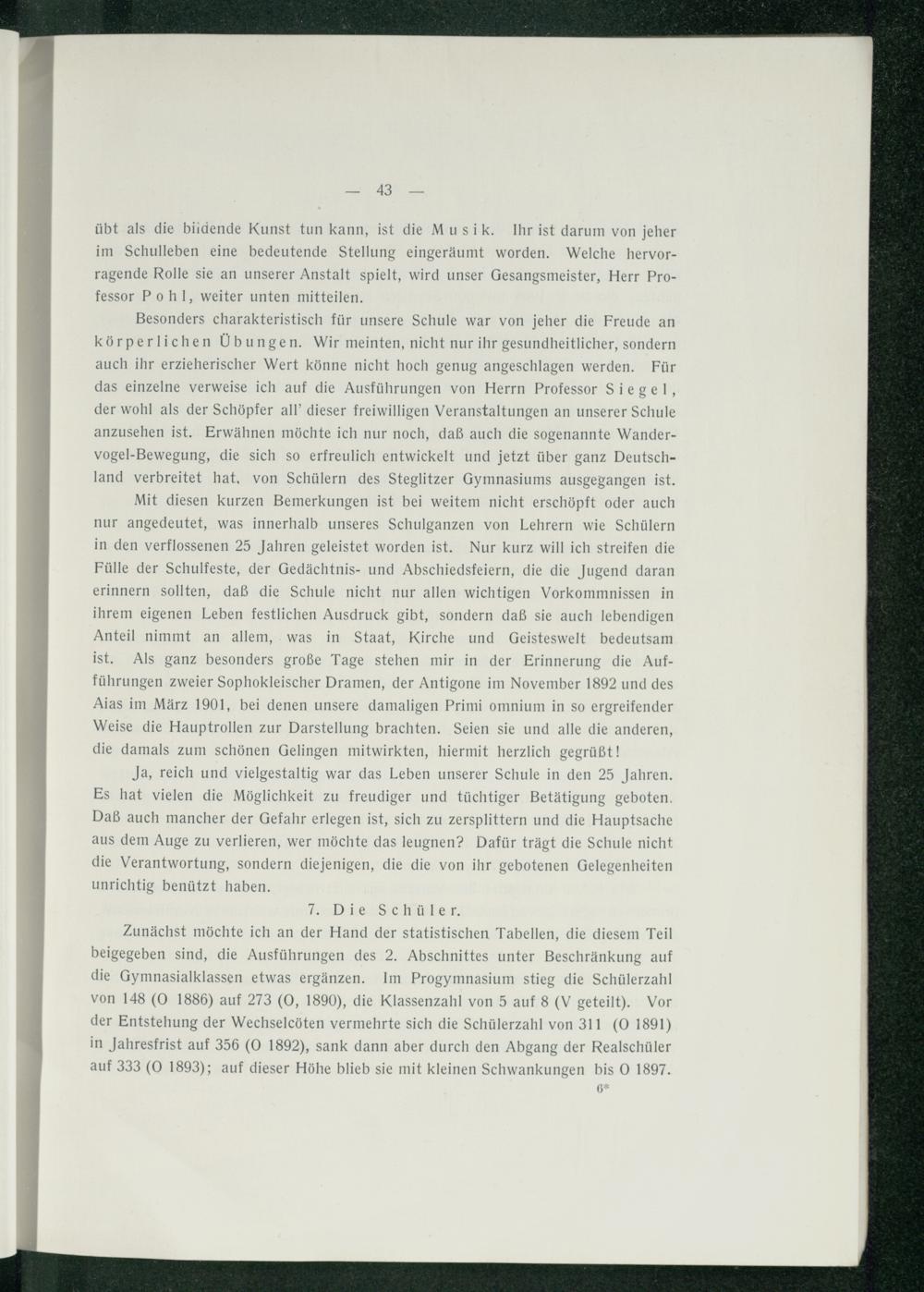 Das erste Vierteljahrhundert des Steglitzer Gymnasiums.
