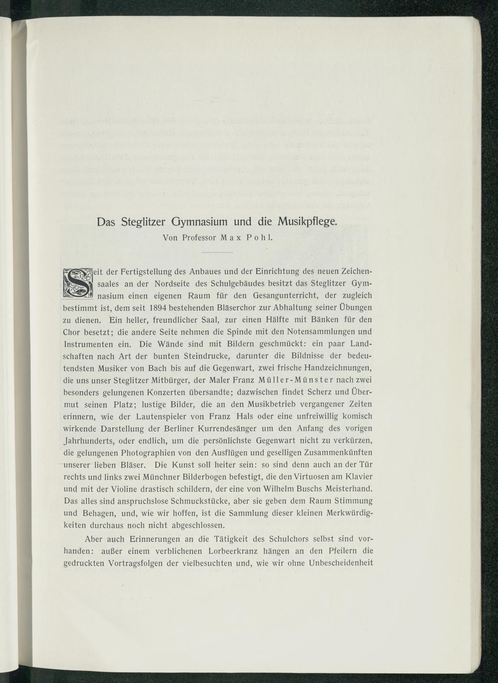 Das Steglitzer Gymnasium und die Musikpflege.