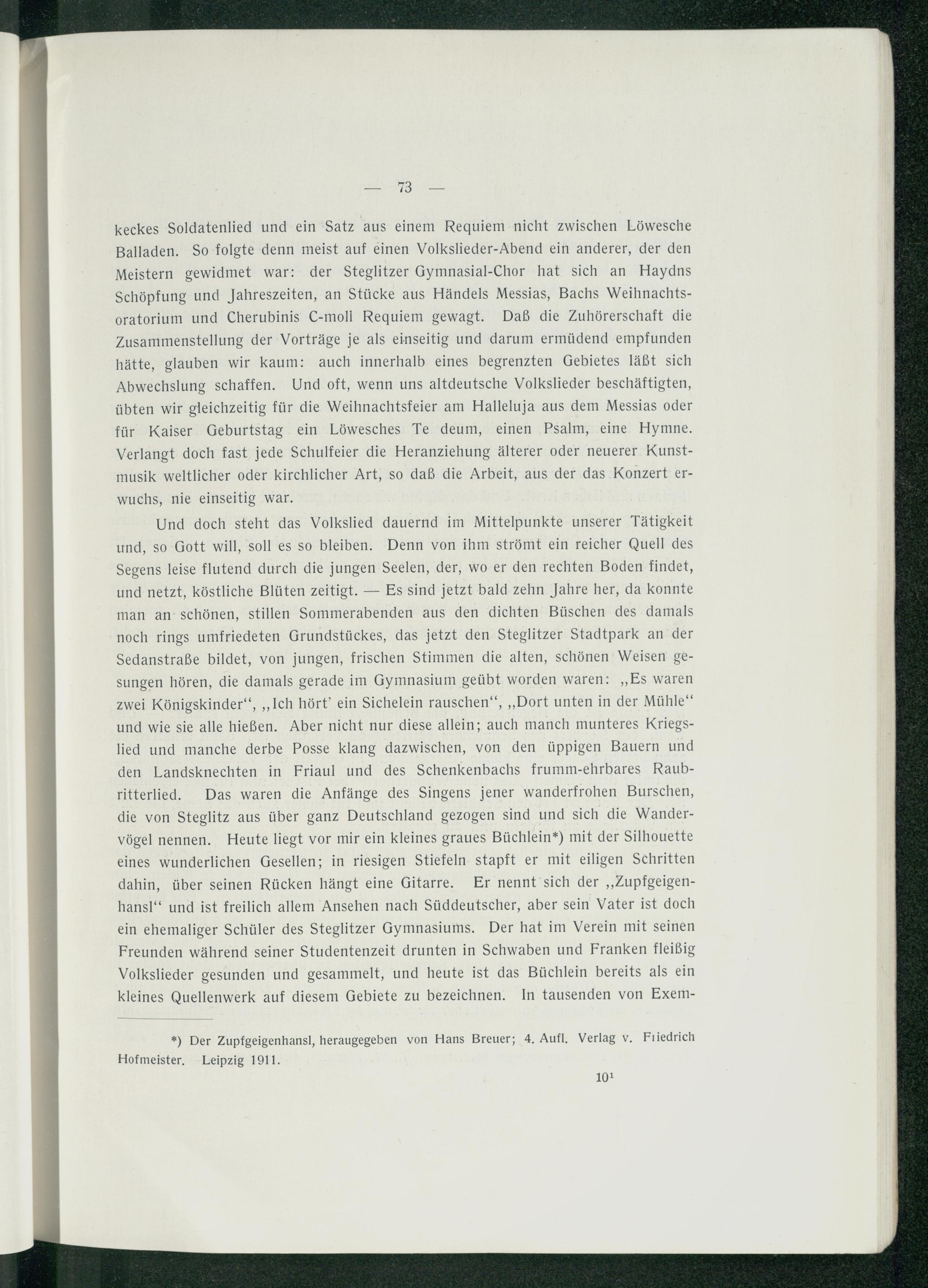 Das Steglitzer Gymnasium und die Musikpflege.