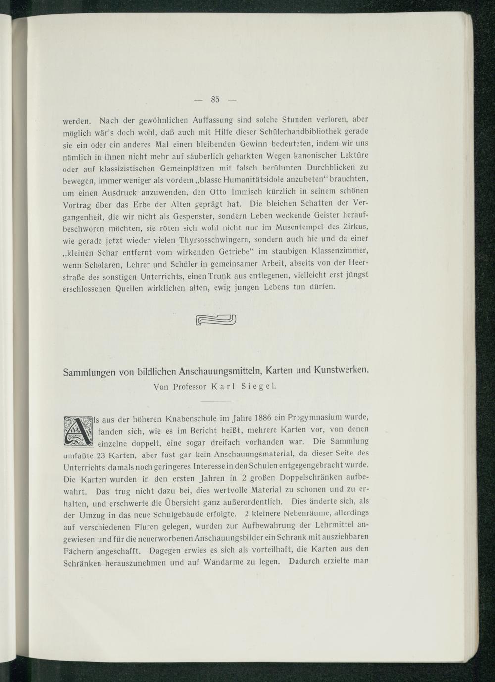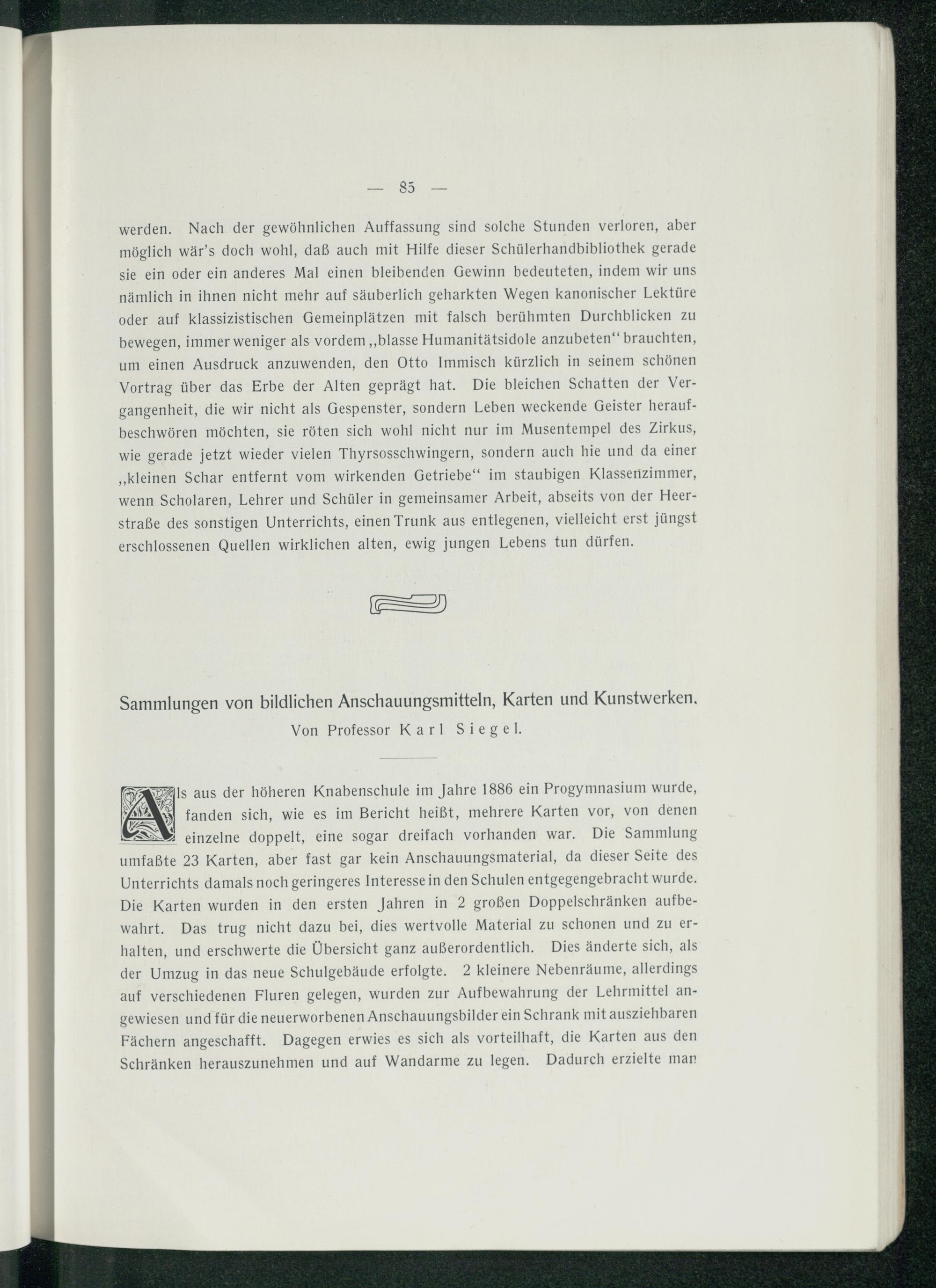 Sammlungen von bildlichen Anschauungsmitteln, Karten und Kunstwerken.